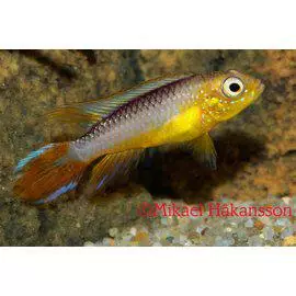 Loistokääpiöahven (Apistogramma agassizii) Koiraskalat voivat kasvaa noin yhdeksän senttimetrin, naaraat vain kuuden sentin mittaisiksi.Koiraat ovat värikkäämpiä ja niiden evät ovat... Lue lisää