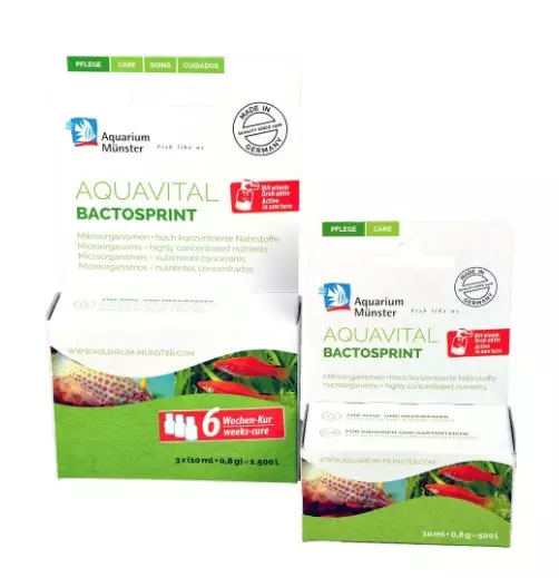AQUAVITAL BACOSPRINT lyhentää akvaarion käynnistysvaihetta uutta järjestelmää käynnistettäessä sekä puhdistuksen ja suodattimien vaihdon jälkeen.