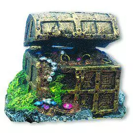 Upea akvaarioon tarkoitettu aarrearkku jossa on ilmapumppu liitäntä mukana ja kannen saa avautumaan ilmakuplilla. Ilmapumput myydään erikseen.