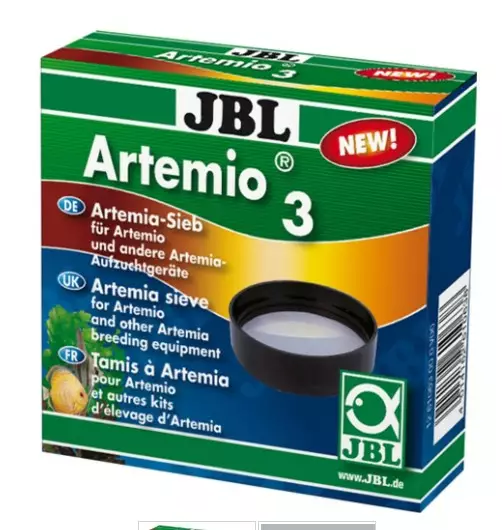 ArtemioSetille tai muille Artemia-kasvatuslaitteille: läpinäkyvä sadonkorjuusäiliö. Kiinnitä siivilä sadonkorjuusäiliöön (saatavana erikseen JBL Artemio 2) ja ota Artemia seulaan sen irrottamisen jälkeen. Päästää suolaveden läpi, saa kiinni Artemia nauplii. Sopii myös muuhun elävään ruokaan. Sisältö: seula ArtemioSetille, Artemio 3