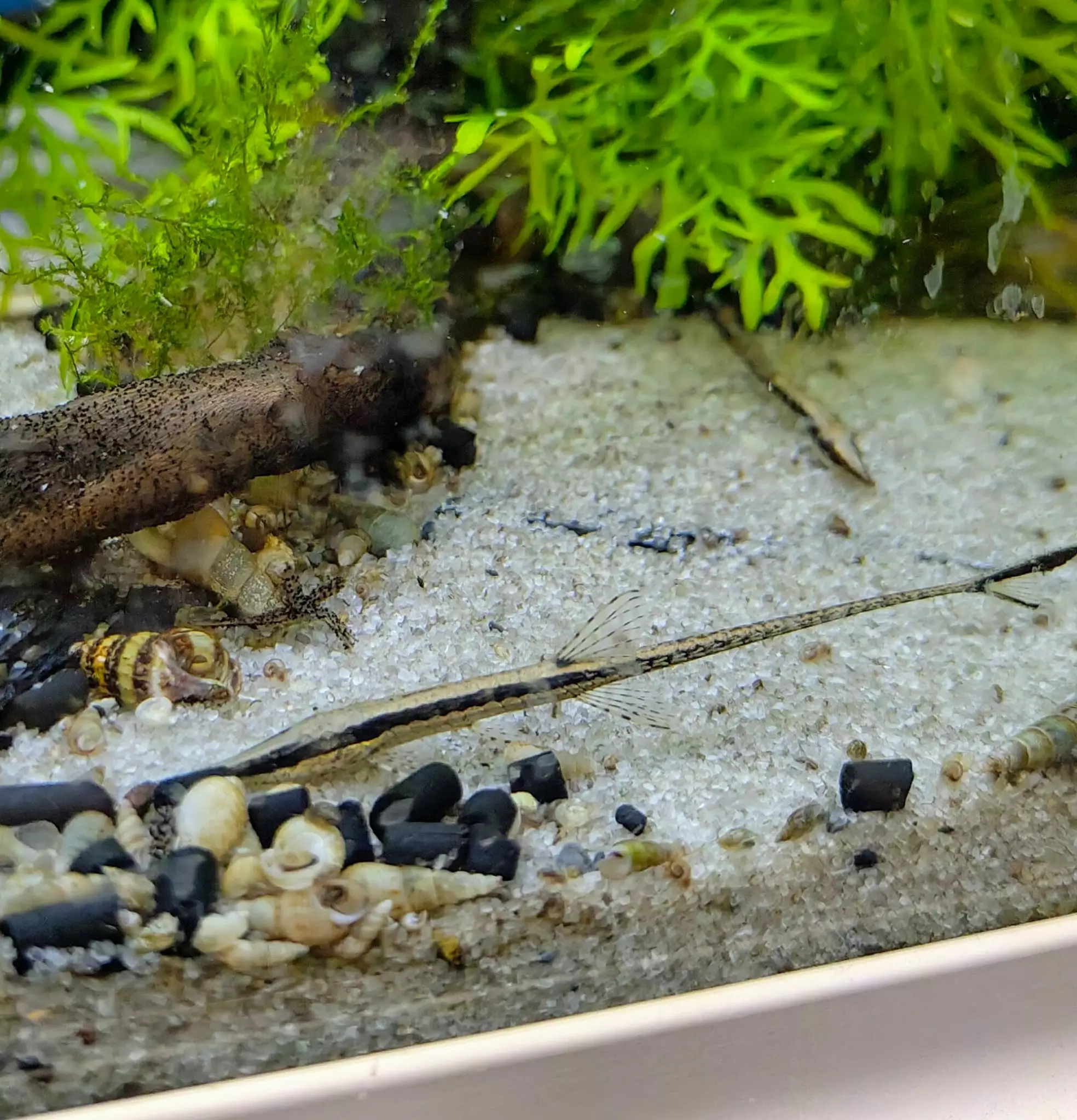 Nokkamonni Farlowella Acus Aikuiskoko n.15cm Akvaarion minimikoko 200 litraa Vesiarvot: Ph 6-7 24-28 Arvostaa rauhallisia allaskavereita, juurakoita, lehtiä. Nokkamonnit on ulkonäöltään puutikkua... Lue lisää