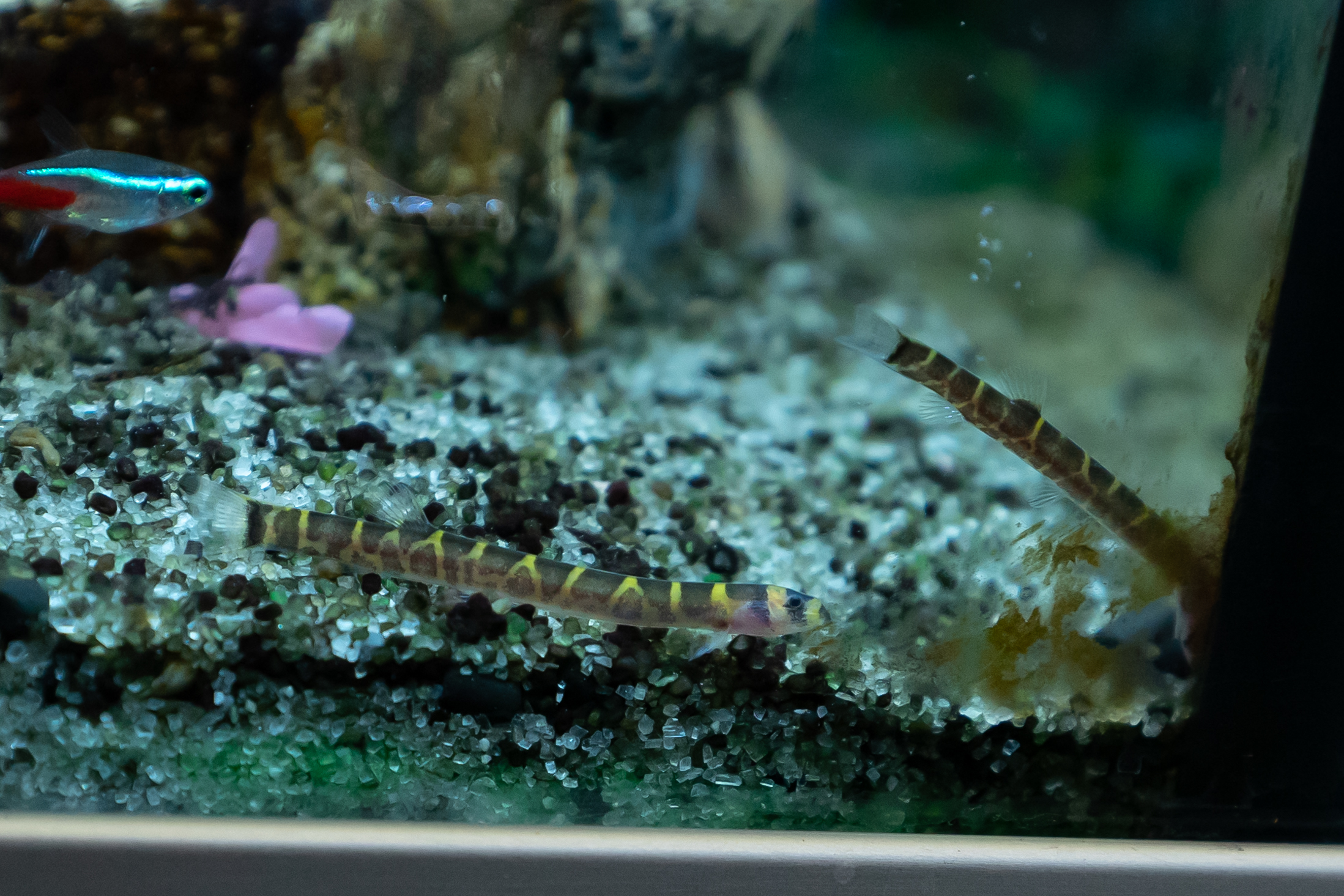Parvessa viihtyvä (minimi 4), hiekkapohja ja piilopaikkoja. Pehmeä, humuspitoinen vesi. Liha- (ja kasvis-)pitoinen ruoka rakeet, tabletit, pakastetut ja kuivatut hyönteisten toukat.