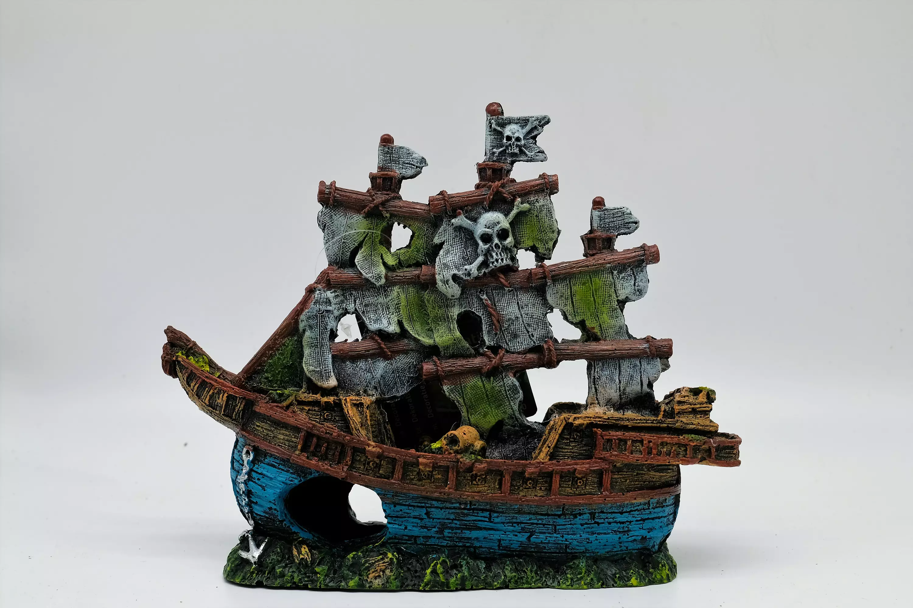 Tässä akvaariokoristeessa on oikeaa merirosvo tunnelmaa. Kokoa purjelaivalla on 23cm pitkä ja 18cm korkea.