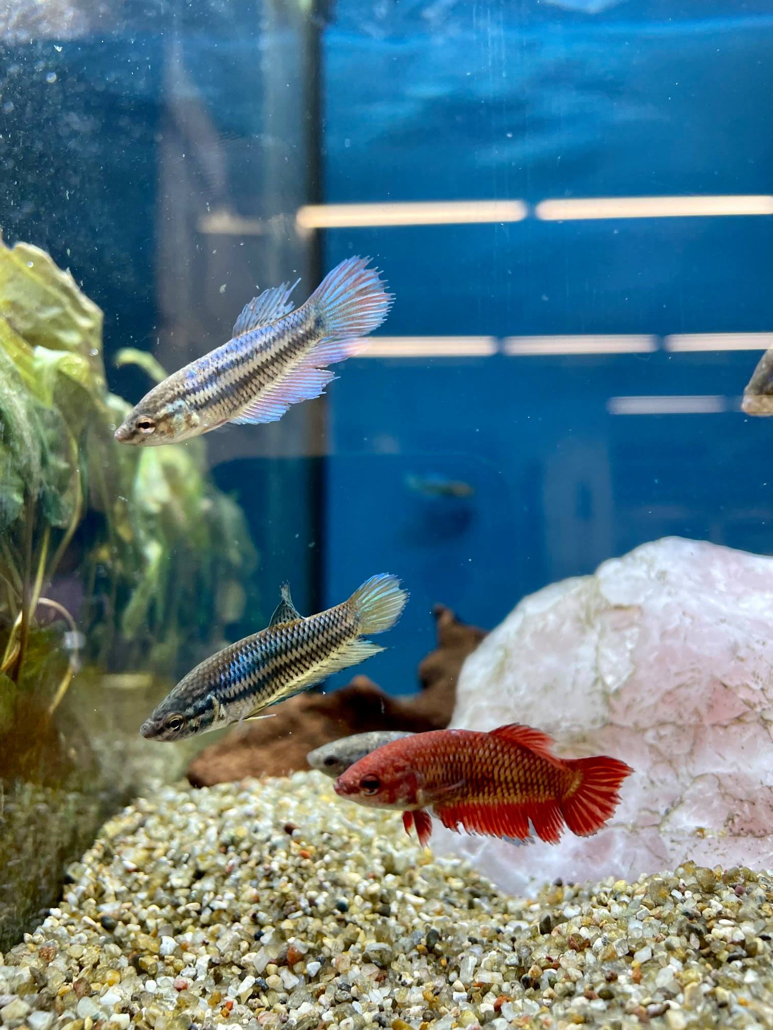 Taistelukala Betta spendens Koko: 6cm Akvaario: 40L Kotoisin: Aasia Vesi : 24-30°C pH 6,0-8,0 Muuta: Seura-akvaarioon sopiva, ei eviä näykkivien lajien kanssa. Akvaariossa saisi olla runsas... Lue lisää