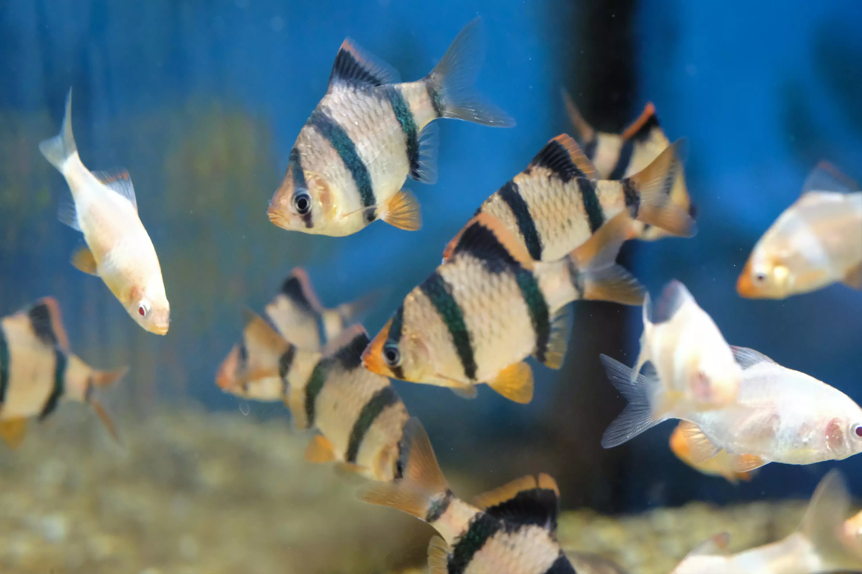 Tiikeribarbi Barbus tetrazona Koko: 7cm Akvaario: 140L Kotoisin : Aasia Vesi: 20-26°C pH 6,0-8,0 Veden laadun suhteen kestävä. Muuta: Eloisa ja aktiivinen parvikala (minimi 6). Parvessa... Lue lisää