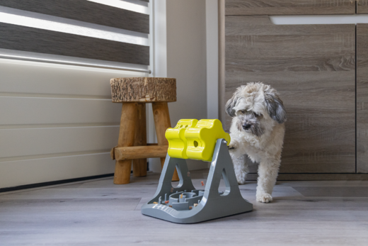 Beeztees Rodar älypeli on loistava aktivointilelu koirille. Peli on valmistettu muovista ja siinä on kaksi rullaa, joihin herkut voi piilottaa. Kun koirasi kääntää rullia käpälällä tai kuonolla, herkut putoavat ulos. Molemmissa rullassa on kaksi reikää, joista herkut voivat pudota ja rei’issä saa kolme erilaista kantta. Kansissa on, joko yksi, kaksi tai kolme reikää ja vaihtamalla kantta voit määrittää pelin vaikeustason. Kun herkku putoaa rullasta, se putoaa suoraan syöttöosaan, josta koiran on etsittävä herkku. Pelin pohjassa on liukuesteet.