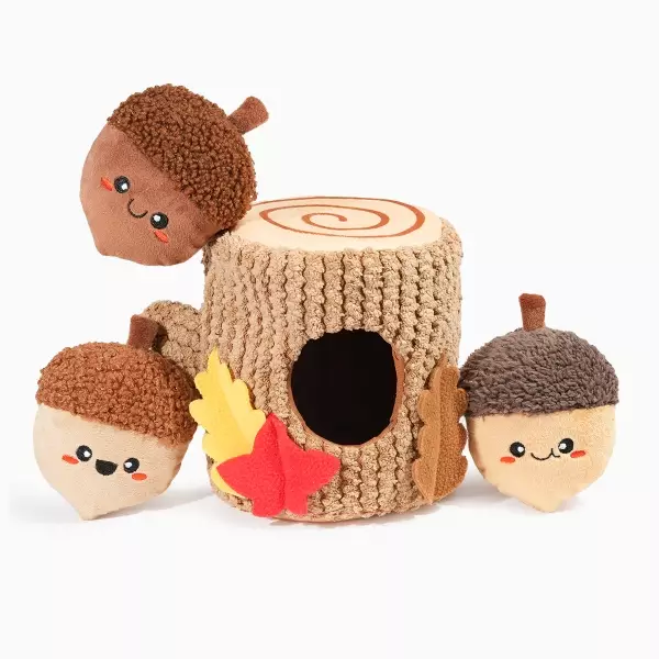 Tässä nteraktiivisessa lelussa on kolme piipitävää tammenterhoa piilotettuna rapisevaan pehmoleluun. Täydellinen pennuille, jotka rakastavat nuuhkimista, etsimistä ja ratkaisemista. Se on hauska tapa kannustaa henkiseen stimulaatioon ja rauhalliseen leikkiin. Piilota herkut sisään saadaksesi ylimääräisen yllätyksen ja anna koirasi nauttia syksyisestä metsästä!