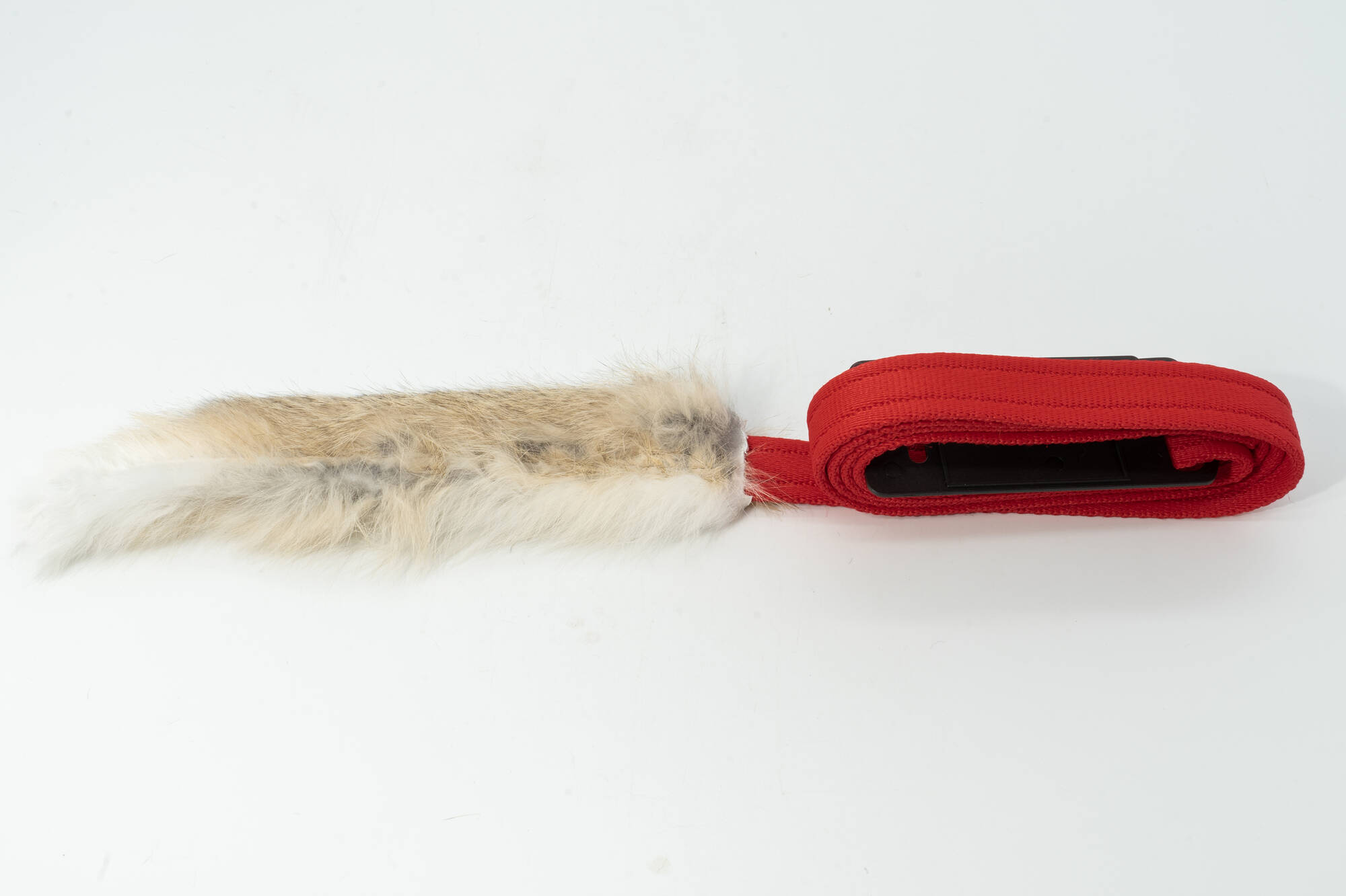 Kaninkarvainen treenilelu pitkällä 120cm hihnalla.