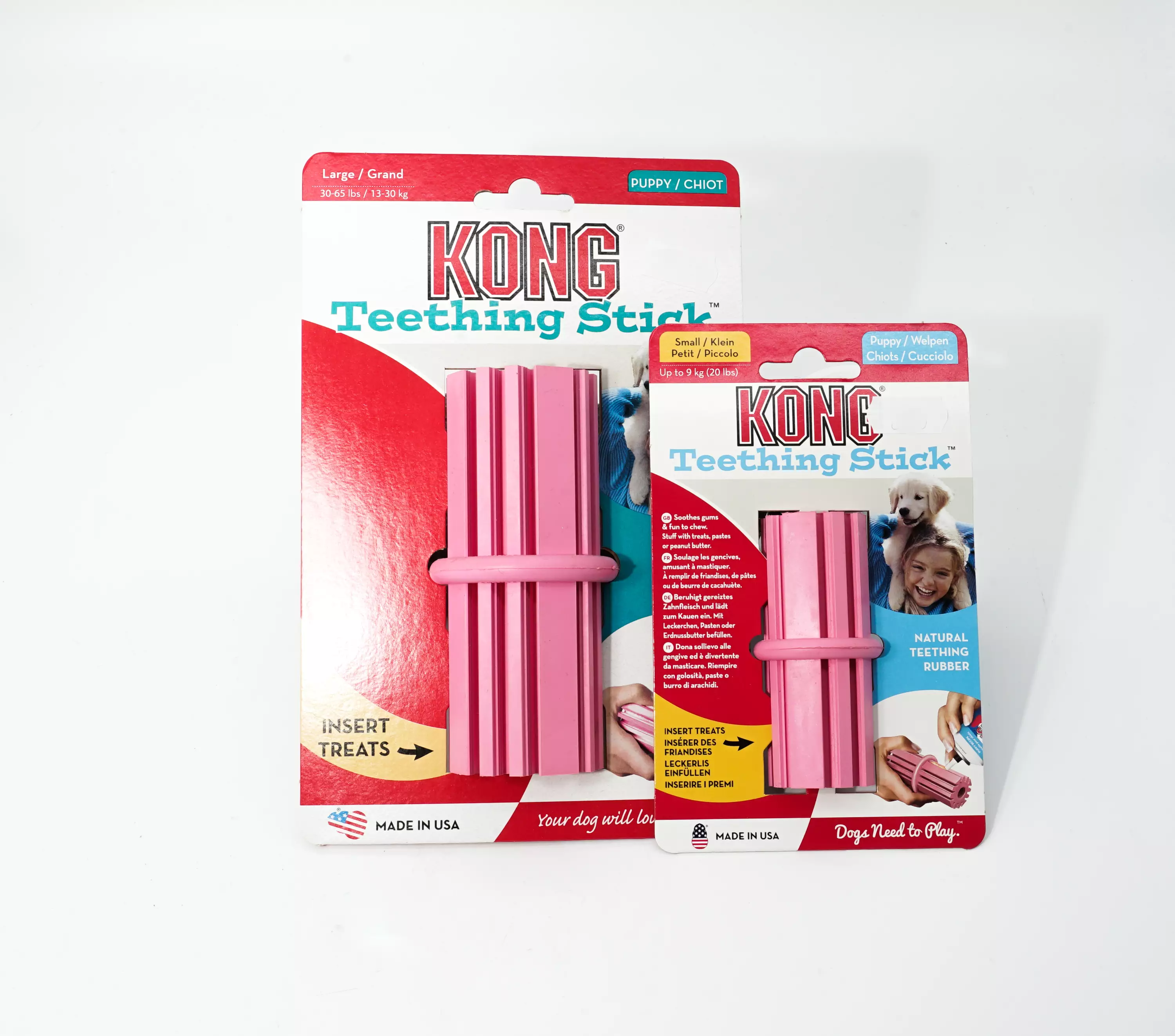 Kong Puppy Dental Stick on pennun hampaita ja ikeniä hellivä Kong-lelu. Dental Stickin taipuisien liuskojen väliin voi laittaa makupaloja tai pursottaa esim. pennuille tarkoitettua Kong Stuff´n täyttötahnaa tai jauhelihaa ja heittää pakastimeen viilentymään myös.