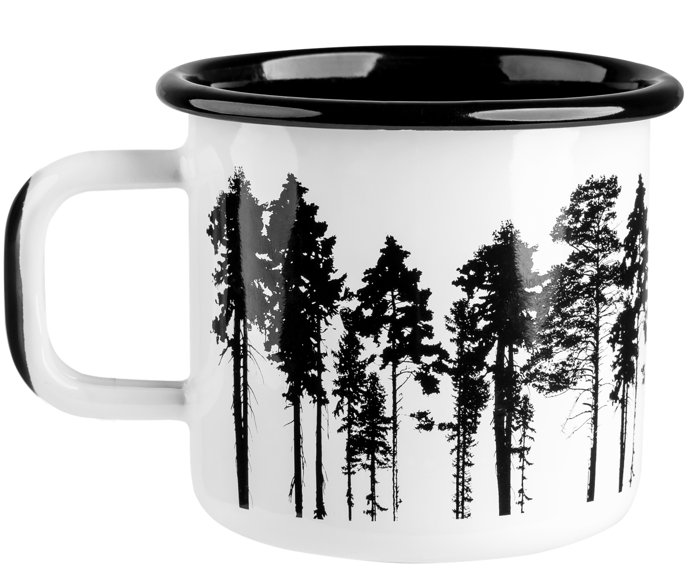 Luontoteemainen, näppärä emalimuki arkikäyttöön - ja miksei metsäreissulle matkaan.
