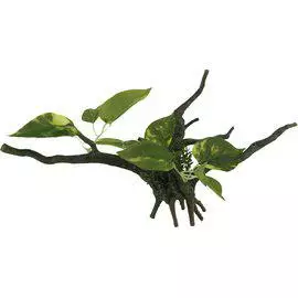 Akvaariokoriste kantao kasveilla muovia. Kooltaan kasvi on 35x15x15cm