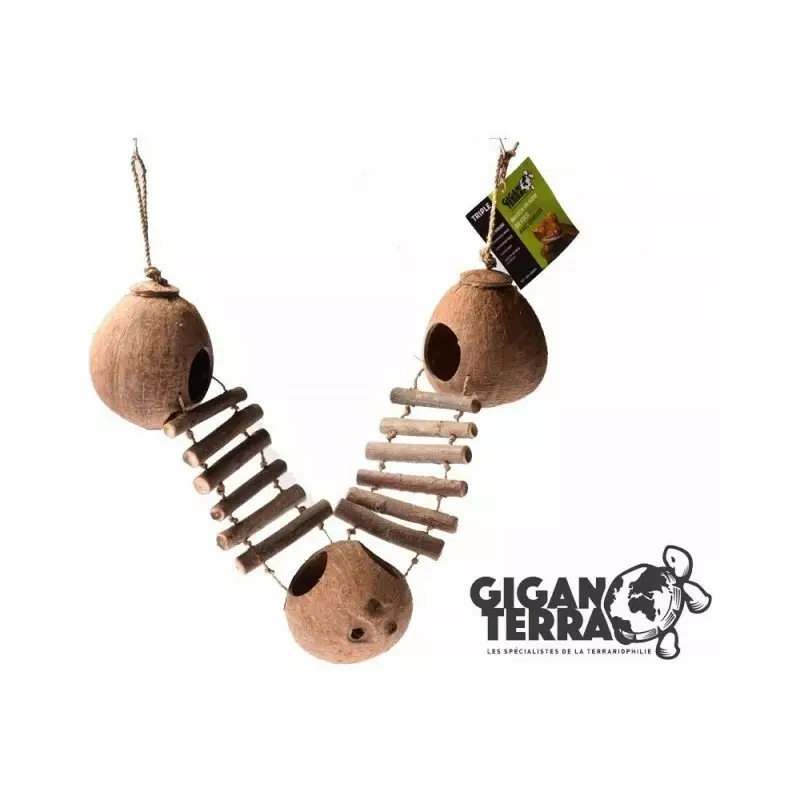 Pieni jyrsijäsi tai matelijasi pääsee helposti mökkiin tikkaita pitkin. Voit helposti kiinnittää kookoksen lemmikkisi häkkiin. Tuote on valmistettu luonnollisista materiaaleista, mikä tekee siitä turvallisen lemmikillesi.