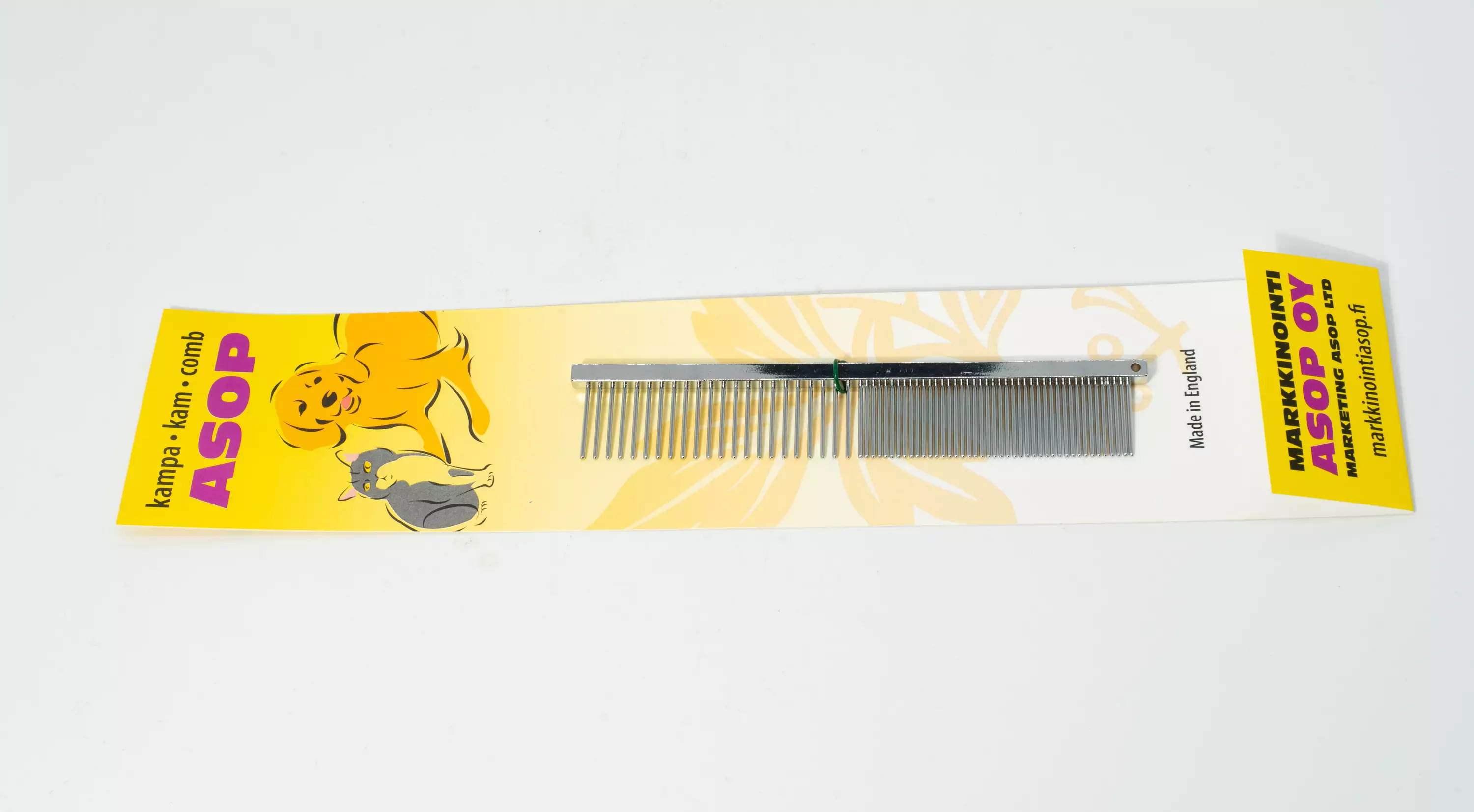 Tämä kampa on hyvä kampa kissoille, kaneille, pienille koirille. Tarpeeksi tiheä uppoamaan pehmeäämpäänkin turkkin.