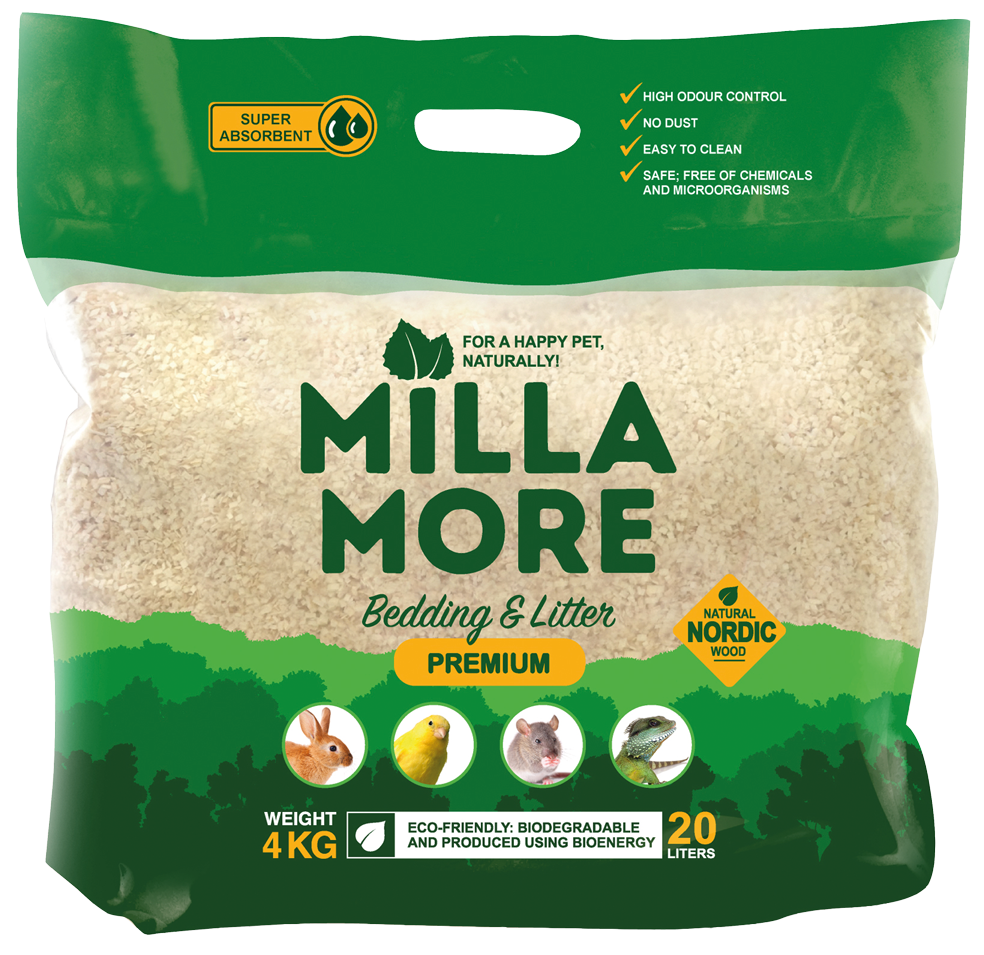 MILLAMORE-kuivike on erityisesti eläimille kehitetty. Se on erinomaisen imukykyinen ja hajuton. Tuotteet ovat turvallisia ja laboratorio-olosuhteissa testattuja. Puu ei sisällä tauteja aiheuttavia bakteereja eikä myrkyllisiä kemiallisia yhdisteitä. Tuotteet ovat pölyttömiä ja haavan pihkapitoisuus hyvin alhainen. Tuotteet eivät sisällä kemiallisia lisäaineita tai puu- tai paperiteollisuuden sivutuotteita. MILLAMOREn avulla häkki on helppo hoitaa ja pitää puhtaana – kuivike ei tartu tassuihin ja turkkiin tai häkin pohjaan.