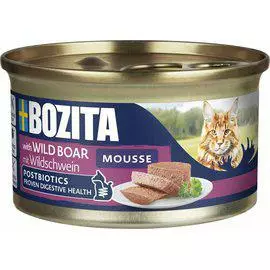 Bozita-mousse villisialla on kermainen ja herkullinen ateria aikuisille kissoille – valmistettu luonnollisista ainesosista ja huolellisesti tasapainotetusta ravinnosta. Jokainen purkki on täysravinto, ilman viljaa, lisättyä sokeria tai keinotekoisia väriaineita. Pehmeä mousse on helppo rakastaa ja vastustamaton jopa nirsoimmalle kissalle.