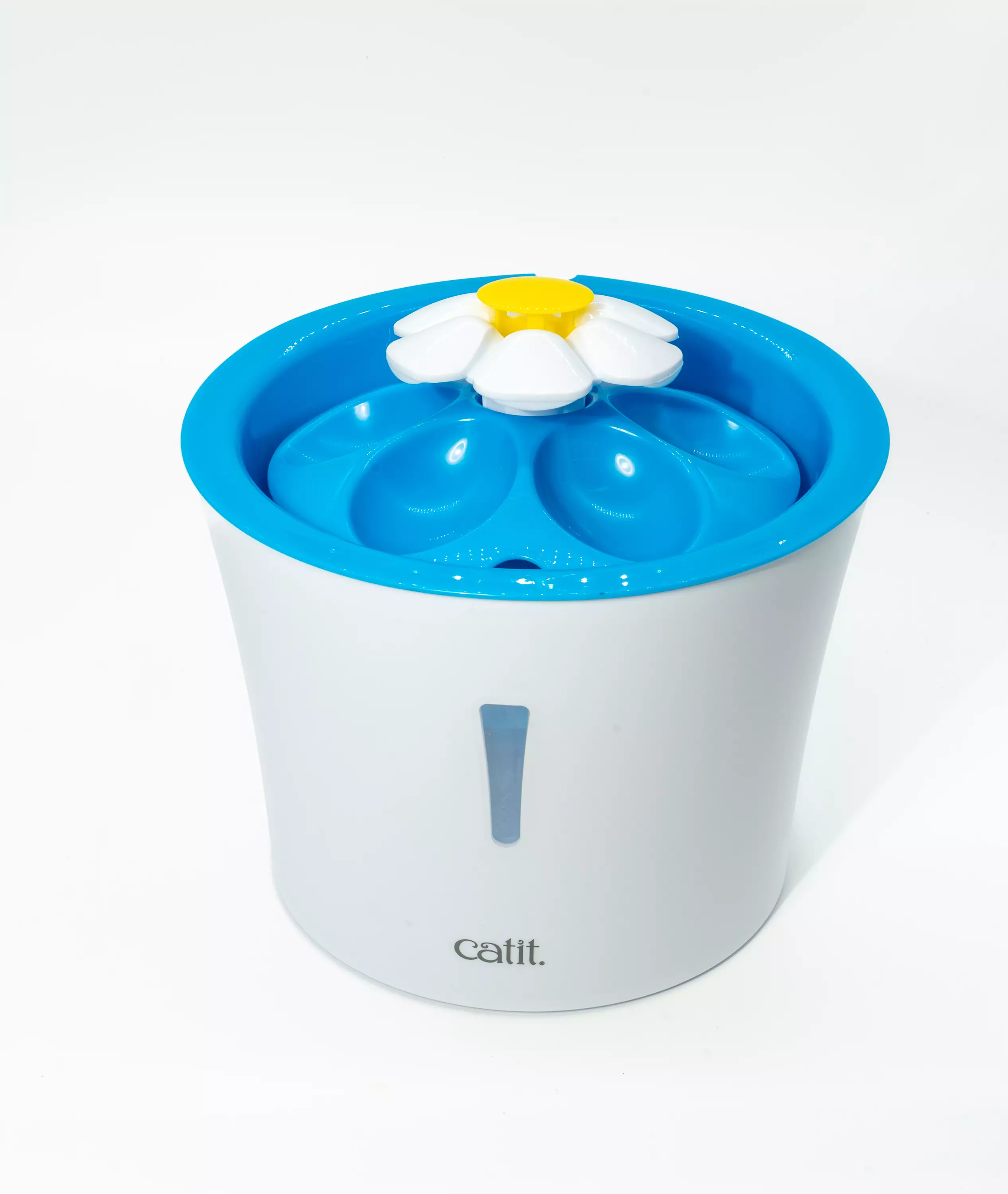 Vesiautomaatti 3L säiliöllä. Tässä automaatissa vesikiertää pumpun avulla ja muodostaan lähdemäisen pinnan. Kissat varsinkin pitävät virtaavasta vedestä ja tämän avulla saadaan juomaan riittävästi.