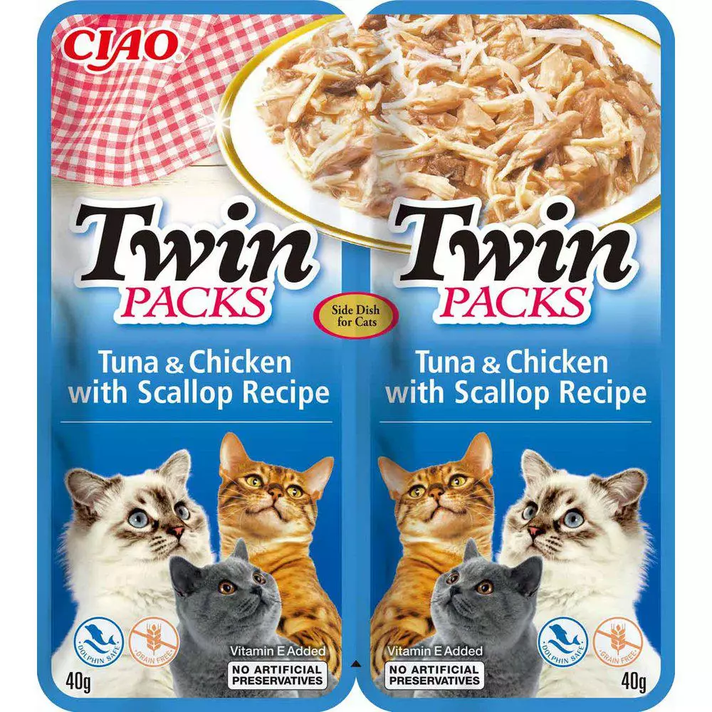Twin Packs kissan tonnikala/kana kampasimpukkaliemessä 2x40g Tonnikala- ja kanaresepti kampasimpukkaliemessä. Jokainen Inaba-tuote on valmistettu herkullisista, korkealaatuisista raaka-aineista... Lue lisää