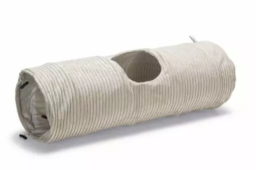 Lotten suunnittelema kissatunneli Ribbed tarjoaa tuntikausia hauskaa leikkiaikaa. Kissasi pitää hauskaa juostessaan tunnelin läpi tai piiloutuessaan siihen. Tunnelissa on aukko edessä, takana ja keskellä. Tunneliin integroidut metallirenkaat pitävät sen auki. Kissatunneli Ribbedissä on trendikäs uurrettu kangas ulkopuolelta, joten se sopii täydellisesti uusimpiin sisustustrendeihin ja on lisäksi kaunis lisä sisustukseesi. Onko kissasi lopettanut leikkimisen? Voit helposti taittaa tunnelin ja säilyttää sen litteänä.