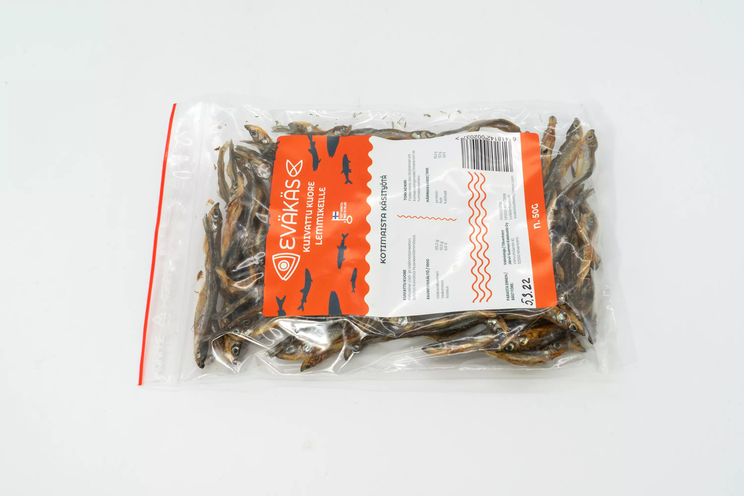 Eväkäs herkku koirille ja kissoille kuivattu kuore 50g Tämä tuote on kotimainen ja ei sisällä lisä tai säilöntäaineita. Koko tuotesarjalle on myönnetty avainlippu. Tuotteet tulevat... Lue lisää
