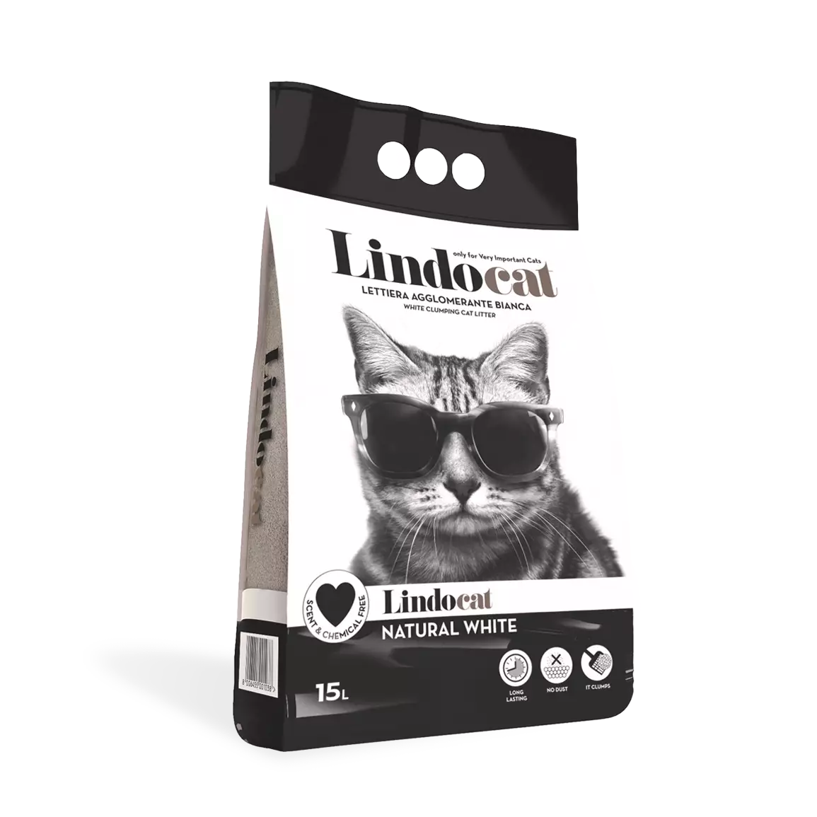 Lindocat Natural White on hajusteeton, paakkuuntuva kissanhiekka, joka on valmistettu 100 % valkoisesta bentoniitista. Valkoinen bentoniitti imee poikkeuksellisen hyvin nesteitä ( jopa kolminkertaisesti oman painonsa verran!) ja hajuja sekä paakkuuntuu vaikuttavasti. Sen hajusteeton koostumus sopii erityisesti herkkähajuisille kissoille.