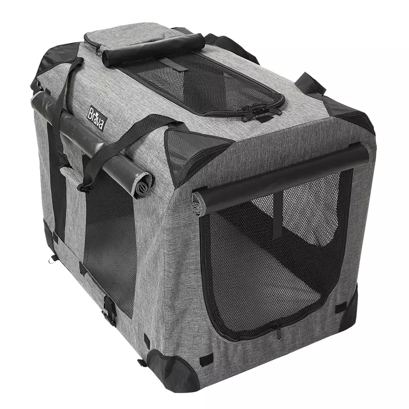 Brava Highway Koiran kevythäkissä on huomioitu kaikki yksityiskohdat koiran mukavaan matkustukseen ja oleskeluun. Kaikkien verkkoikkunoiden yläpuolella on verhokangas, joka on helppo laskea alas ja rullata ja kiinnittää helposti tarranauhalla ylös. Alas laskettu verho antaa koiralle omaa rauhaa ja suojaa säältä, kun taas ylös nostettuna näköyhteys ympäristöön säilyy ja ilmanvaihto häkkiin paranee. Häkin pohjalla on vetoketjupäällisellä varustettu irrallinen makuualusta.