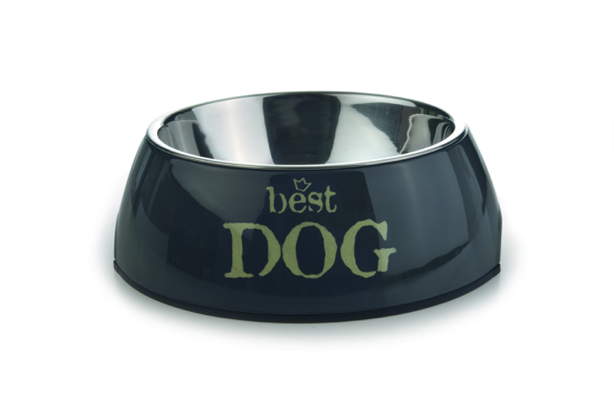 Kaunis melamiinikuppi Best Dog- tekstillä koiralle. Irrotettava teräksinen kuppi on helppo pestä ja pitää puhtaana.
