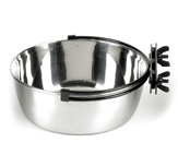 Kestävä ja laadukas teräskuppi siipimutterikiinnityksellä, jonka saa helposti ja jämäkästi kiinni esimerkiksi ulkotarhan verkkoon tai kuljetusboksiin.