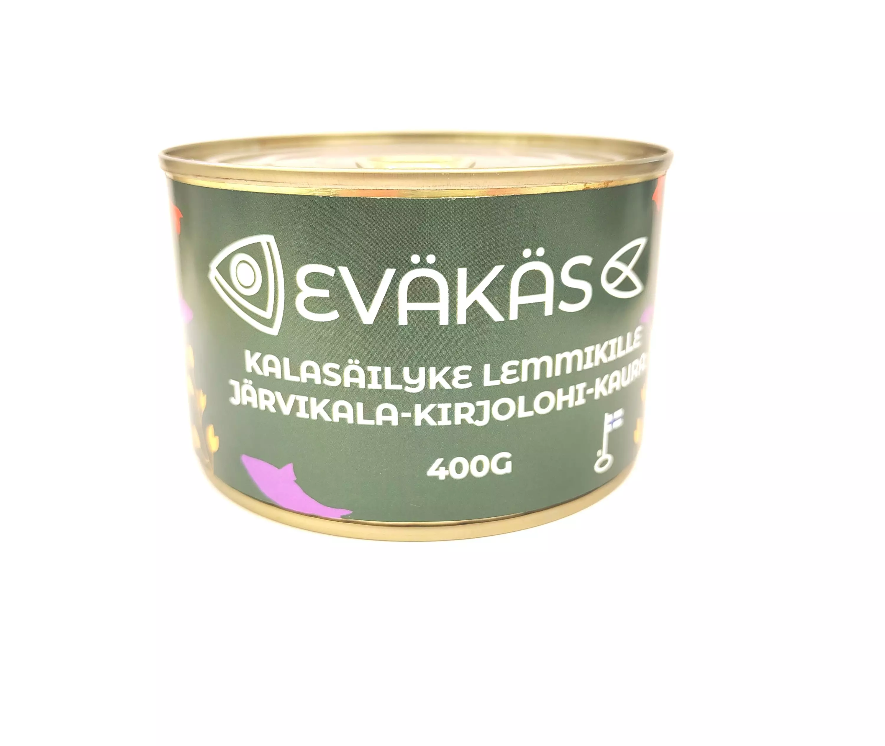 Eväkäs on kotimaista järvikalaa, kirjolohta ja kauraa. Tämä tuote on kotimainen ja ei sisällä lisä tai säilöntäaineita. Koko tuotesarjalle on myönnetty avainlippu. Tuotteet tulevat... Lue lisää