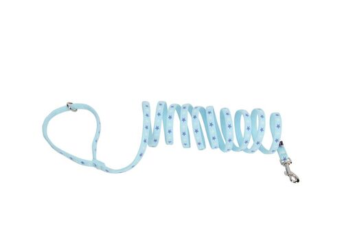 Talutin sopii myös kissojen ulkoiluttamiseen. Taluttimen materiaali on kudottua pehmeää ja joustavaa nauhaa. Taluttimen päässä on niklattu pieni pistoolilukko, jolla talutin kiinnitetään pantaan tai valjaaseen.