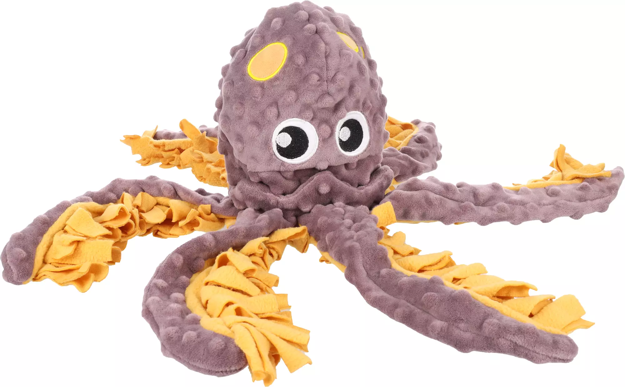Snuffle Mat Puppy Morgano Octopus on lelu ja aktivointilelu pennullesi! Täytä se herkuilla tai kuivaruoalla ja anna karvaisen ystäväsi haistella herkkuja. Rapiseva ääni lisää hauskuutta ja estää koiraasi syömästä välipalojaan liian nopeasti.