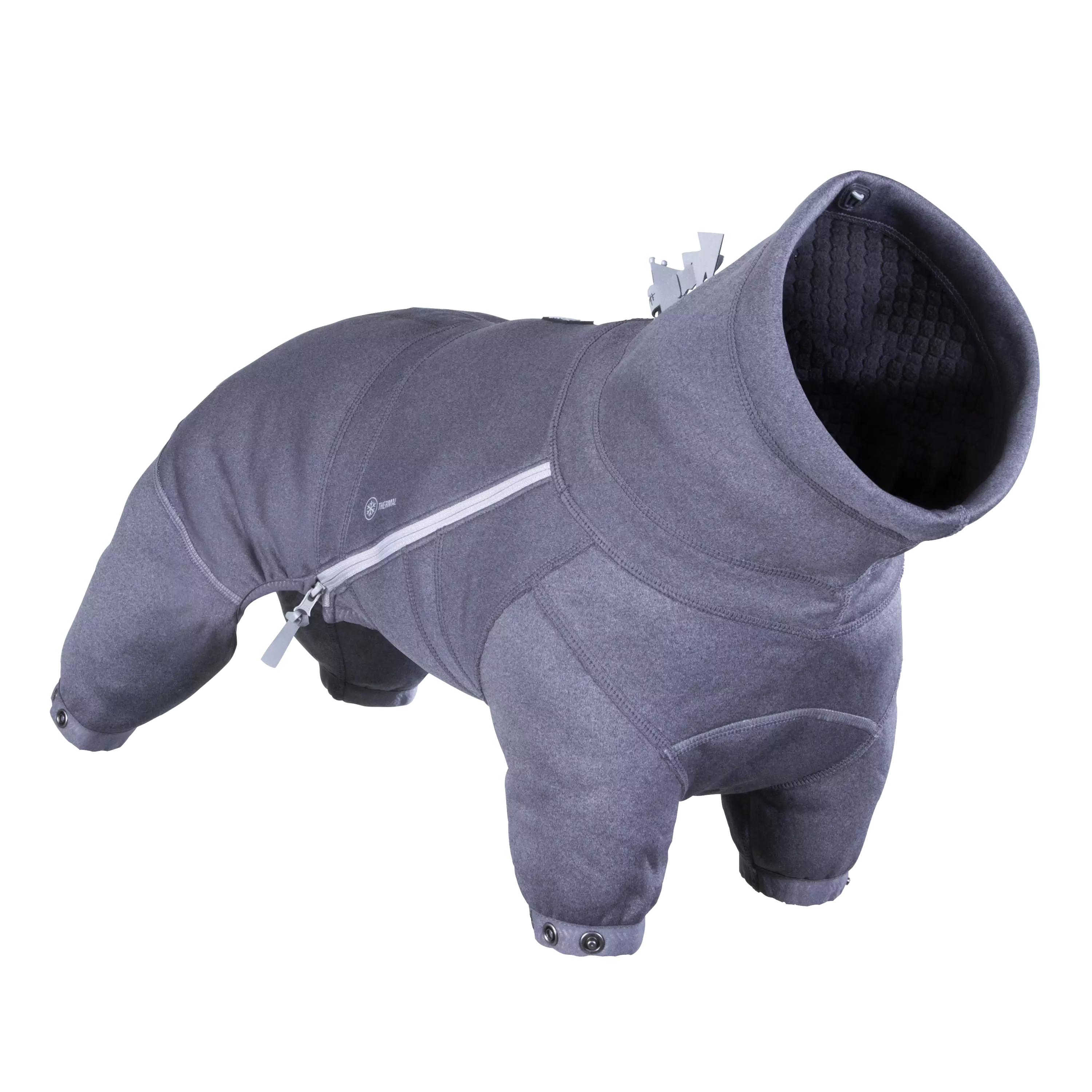 Midlayer Overall pitää koirasi lämpimänä ja suojassa kylmiltä lämpötiloilta. Haalarin päällikangas on valmistettu kevyestä, toiminnallisesta jerseystä. Sisäpuoli on lämpöisen pehmeää jaquardfleeceä.