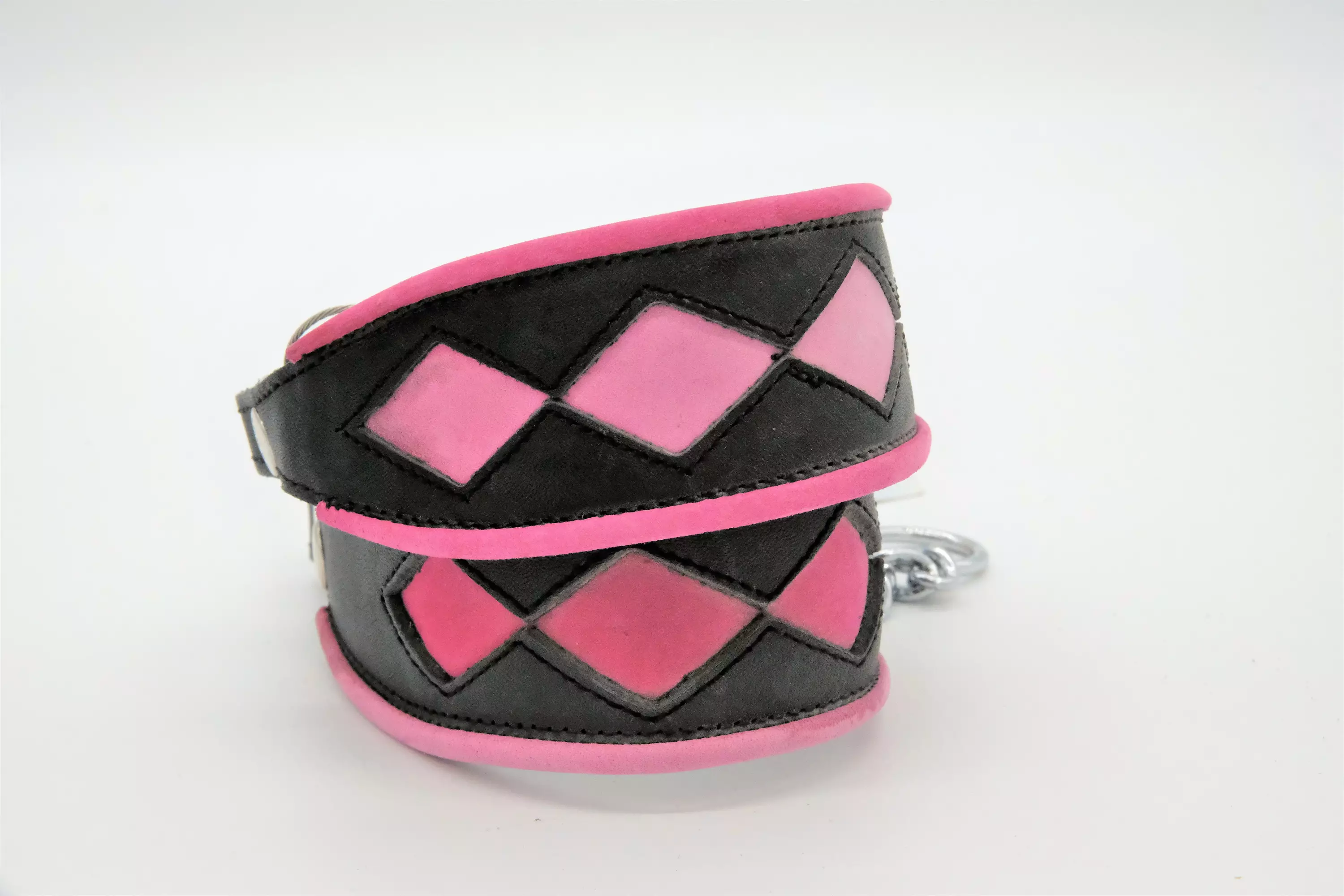 Jokke Puolikiristävä Nahkapanta Komia, fuksia/musta. Täysnahkainen keskeltä levenevä puolikiristävä kaulapanta. Pannassa hieno kontrastiväritys (musta-fuksia), joka muodostaa pantaan "pohjalaisen" salmiakkikuvion. Panta on valmistettu tuplanahasta, joten se on erittäin kestävä. Kestävyyttä lisää myös tupla niitein kiinnitetty hopean värinen ketju.