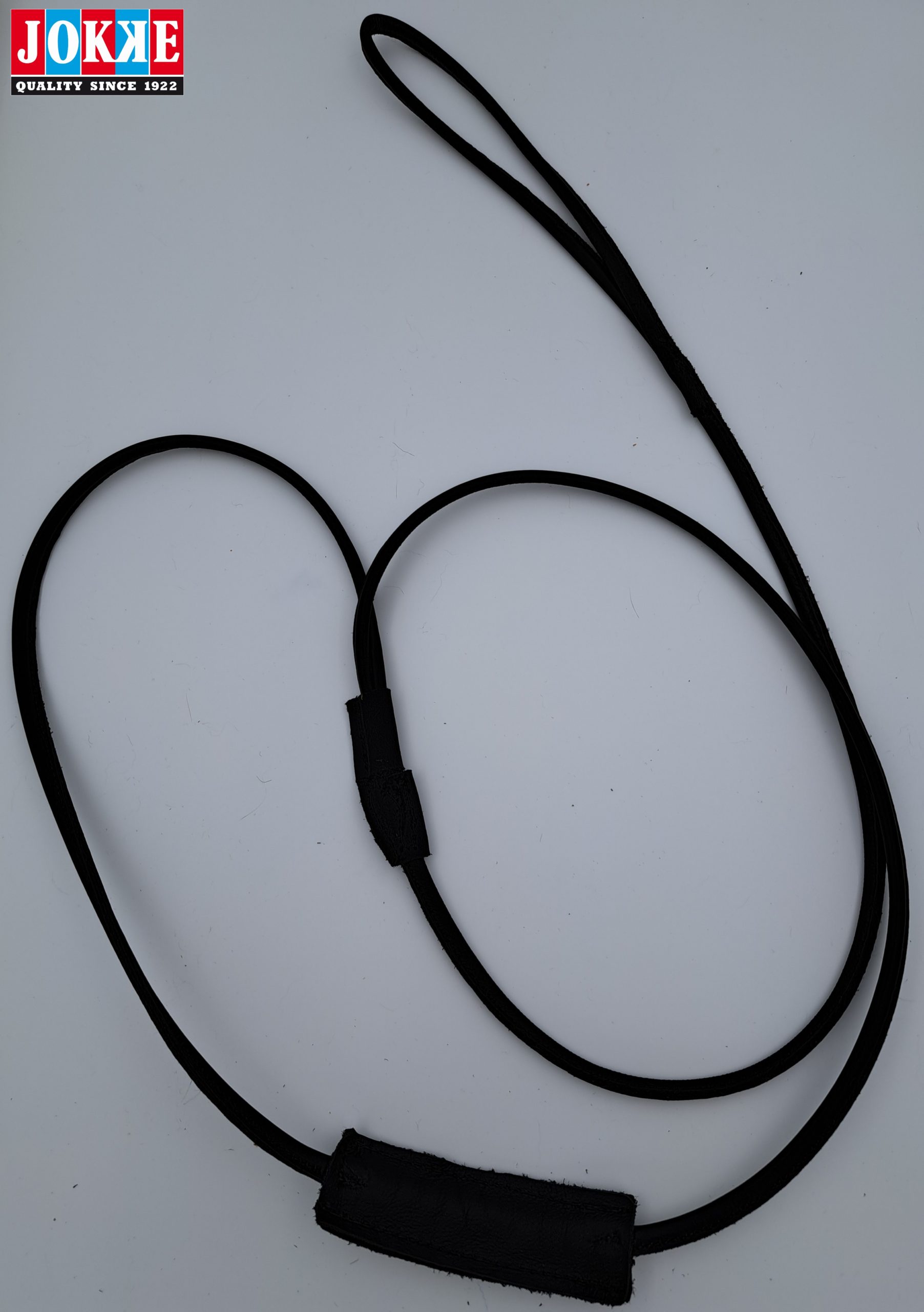 Pyöreä- ja pehmeänahkainen talutin säädettävällä pantapituudella, läpimitta 55 mm x kokonaispituus pantaosa mukaanlukien on 120 cm.