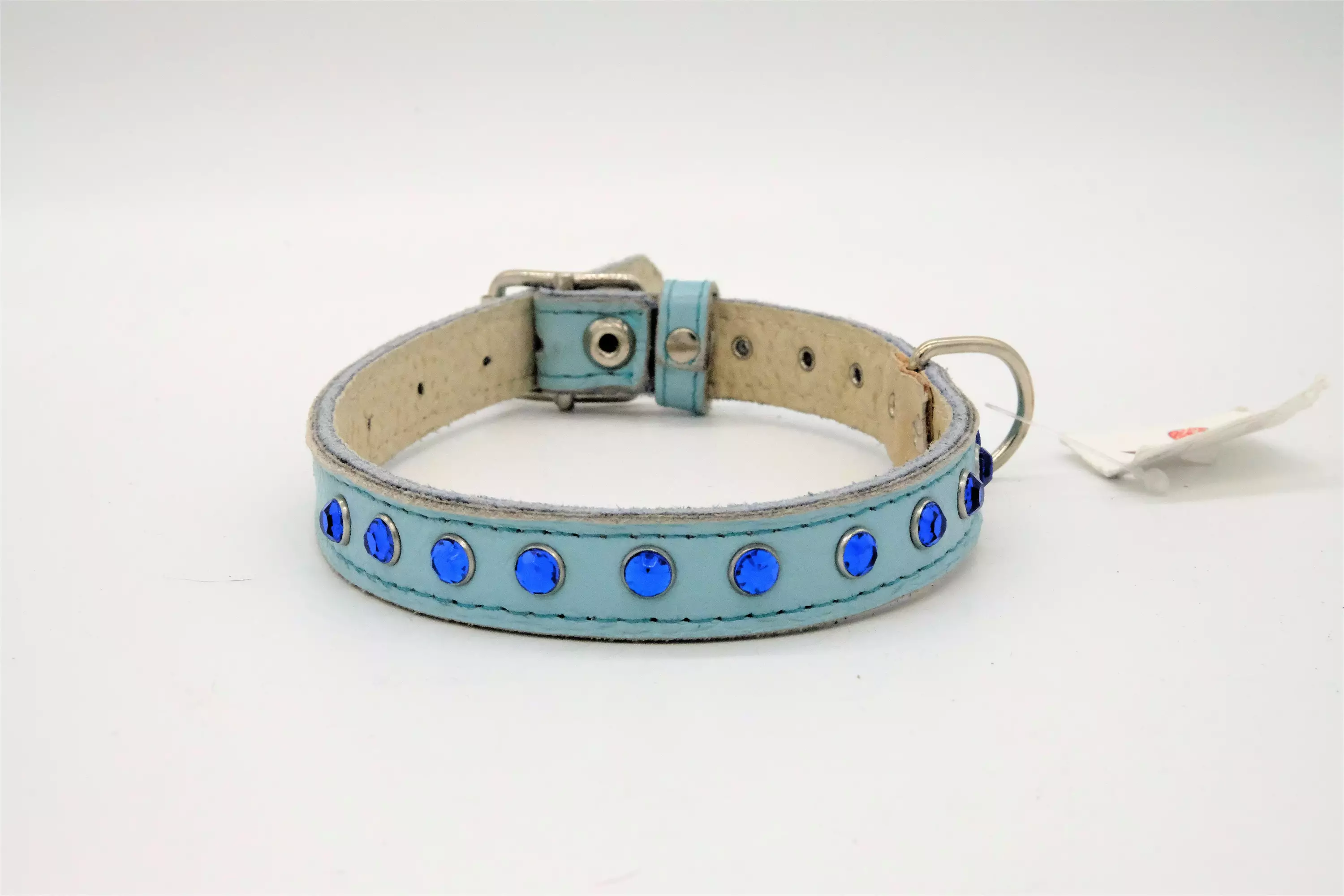 Tämä ihana vaaleansininen panta on Suomalaista käsityötä. Panta on aitoa nahkaa , johon on upotetettu 1 riviä "timantteja".