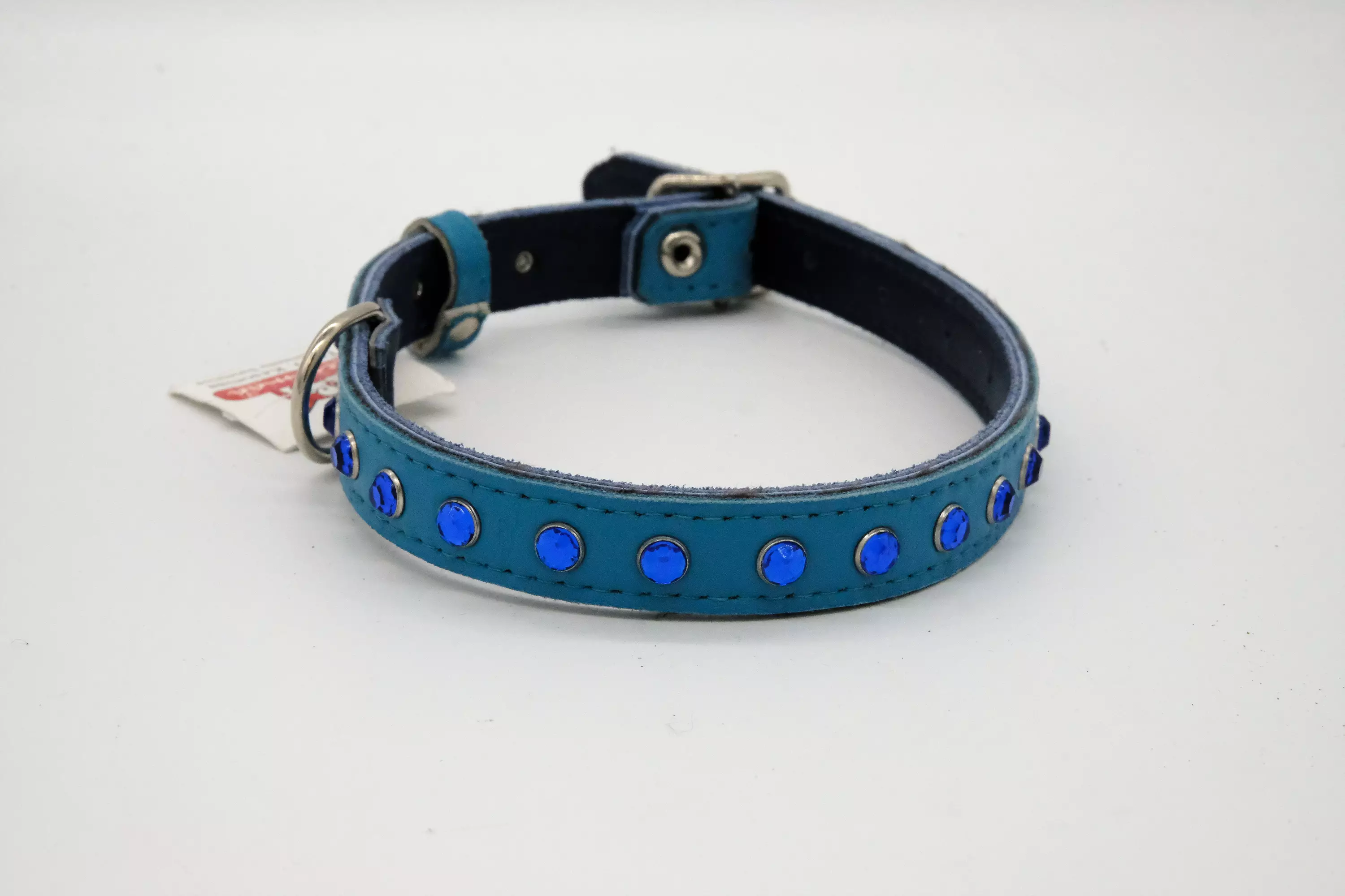 Tämä ihana turkoosi panta on Suomalaista käsityötä. Panta on aitoa nahkaa , johon on upotetettu 1 riviä "timantteja".