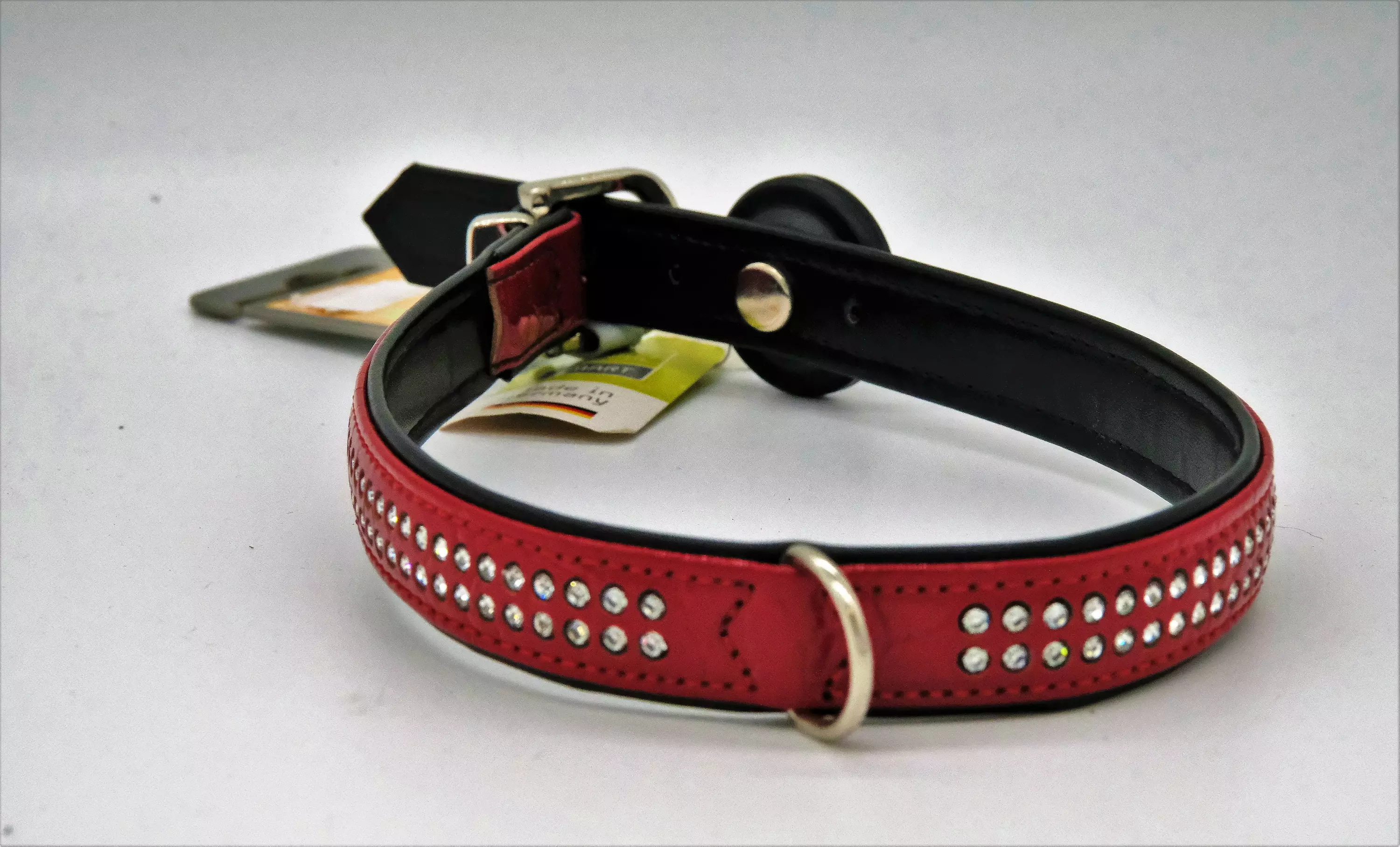 Kaunis panta hillityllä krokotiilikuviolla ja upeilla timanteilla. Vaaleat timantit koristavat tätä punaista pantaa kahdessa rivissä. Laadukas ja jämäkän oloinen panta kovaankin käyttöön!... Lue lisää