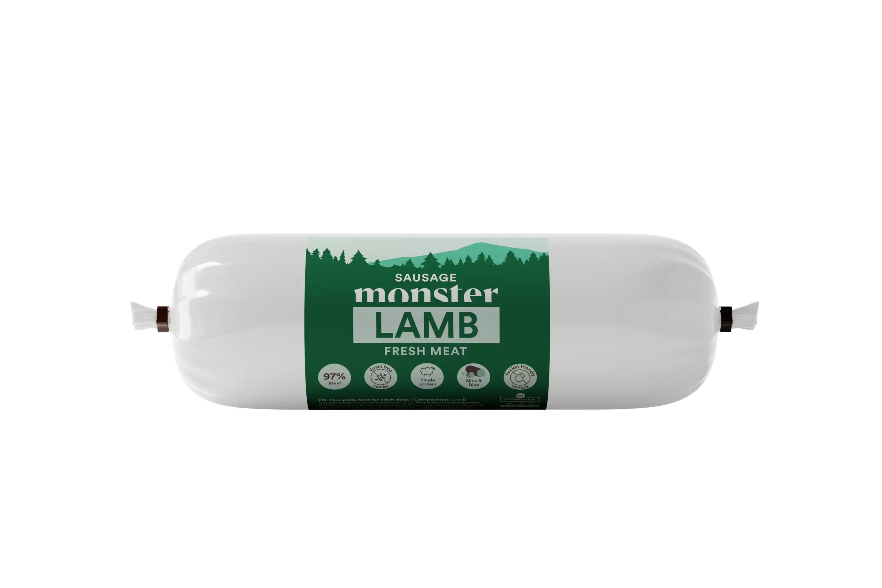 Lampaanliha 97 %, karrageeni (E407) 3 %.