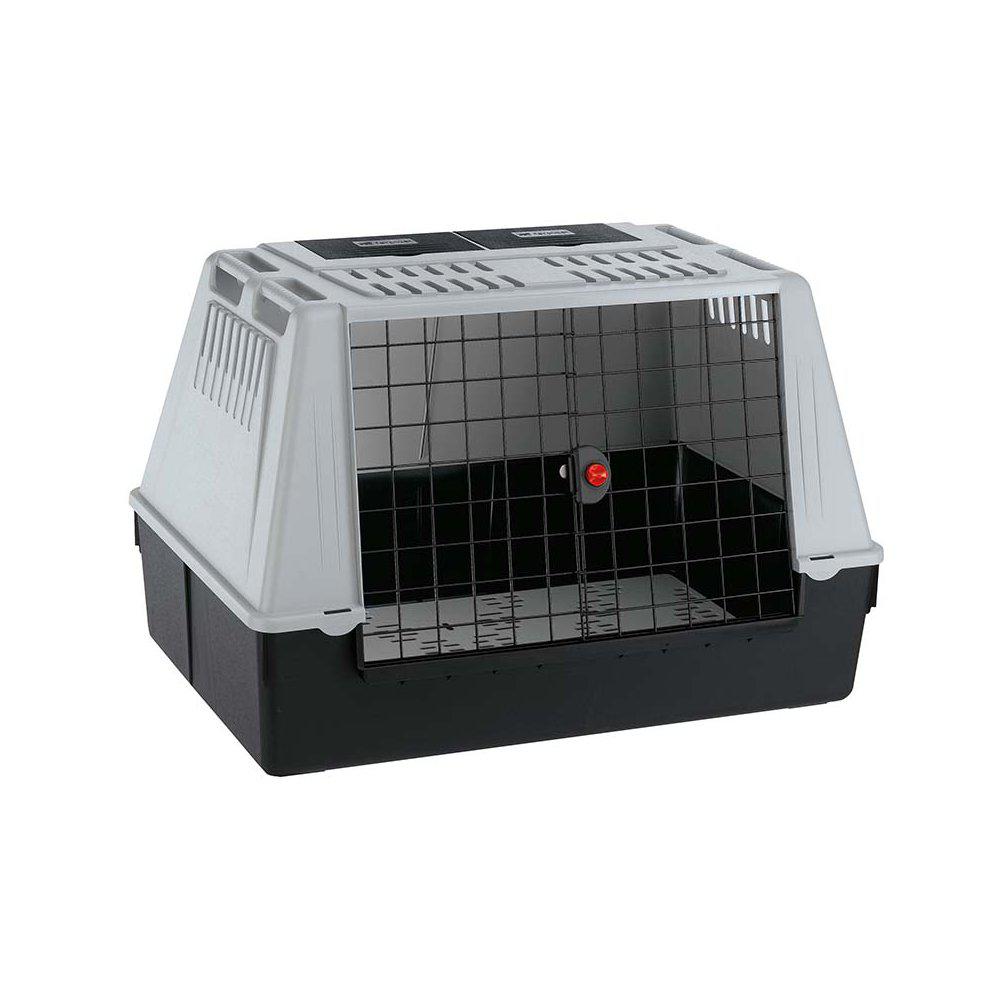 Oviluukut liukuu molempiin suuntiin ja häkki on varustettu ilma-aukoilla. Tämä autohäkki on myös helppo kasata: ylä- ja alaosa kiinnitetään yhteen neljällä ruuvilla.
