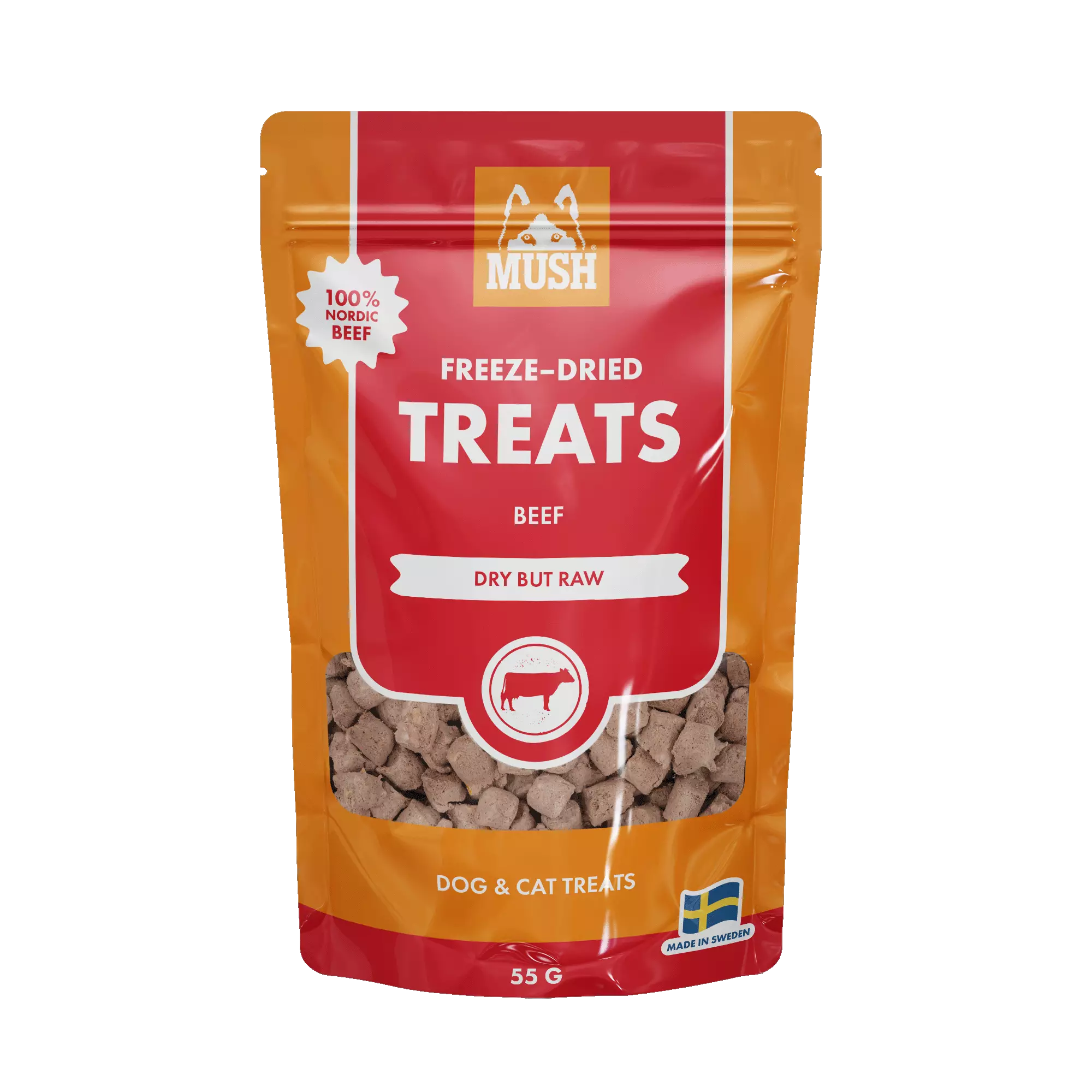 Pohjoismaista nautaa – täyteläinen maku ja korkea laatu tekevät tästä herkkupalasta vastustamattoman. Pakastekuivaus säilyttää kaikki tärkeät ravintoaineet.