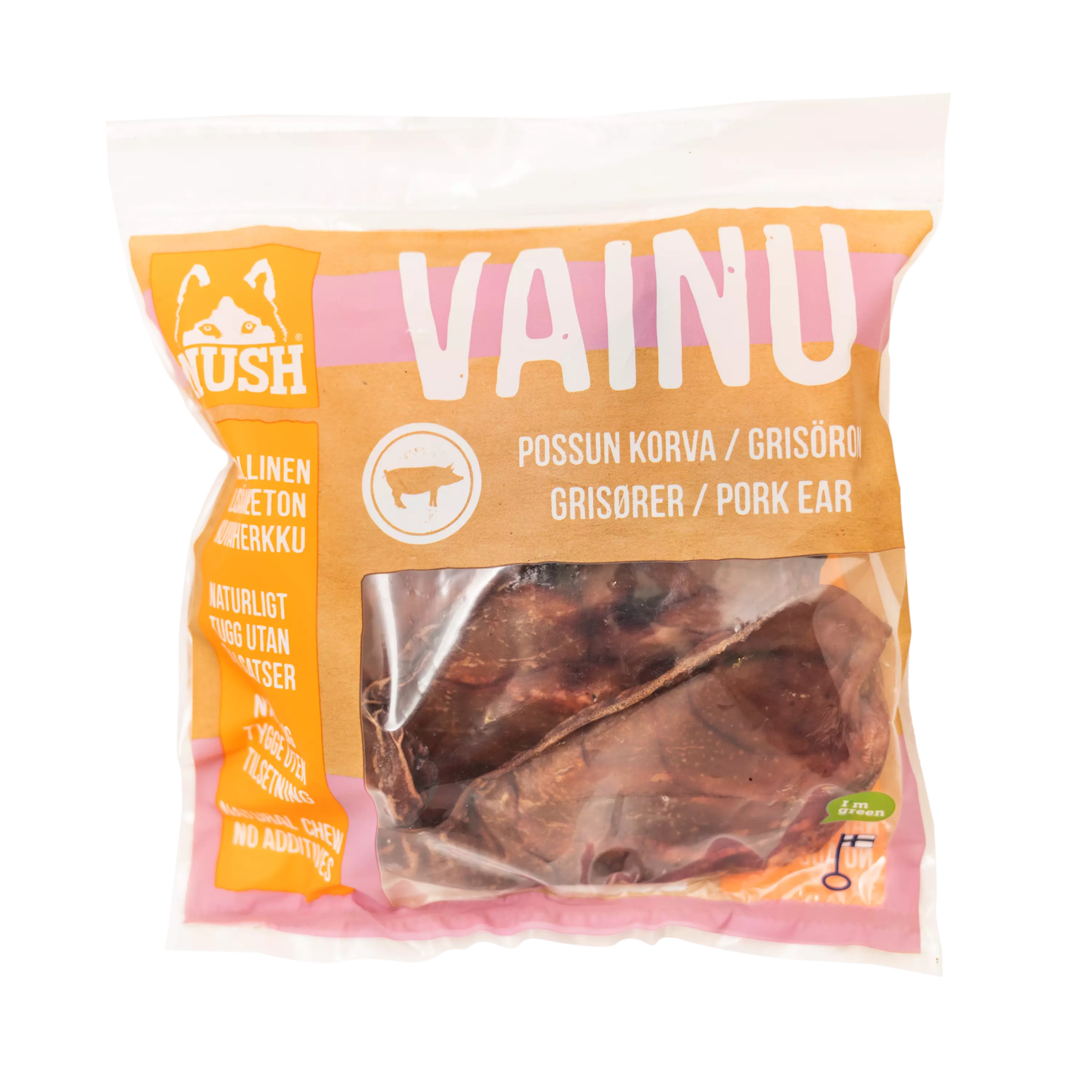 Ainekset: Suomalaisen sian korvat, kuivattu.