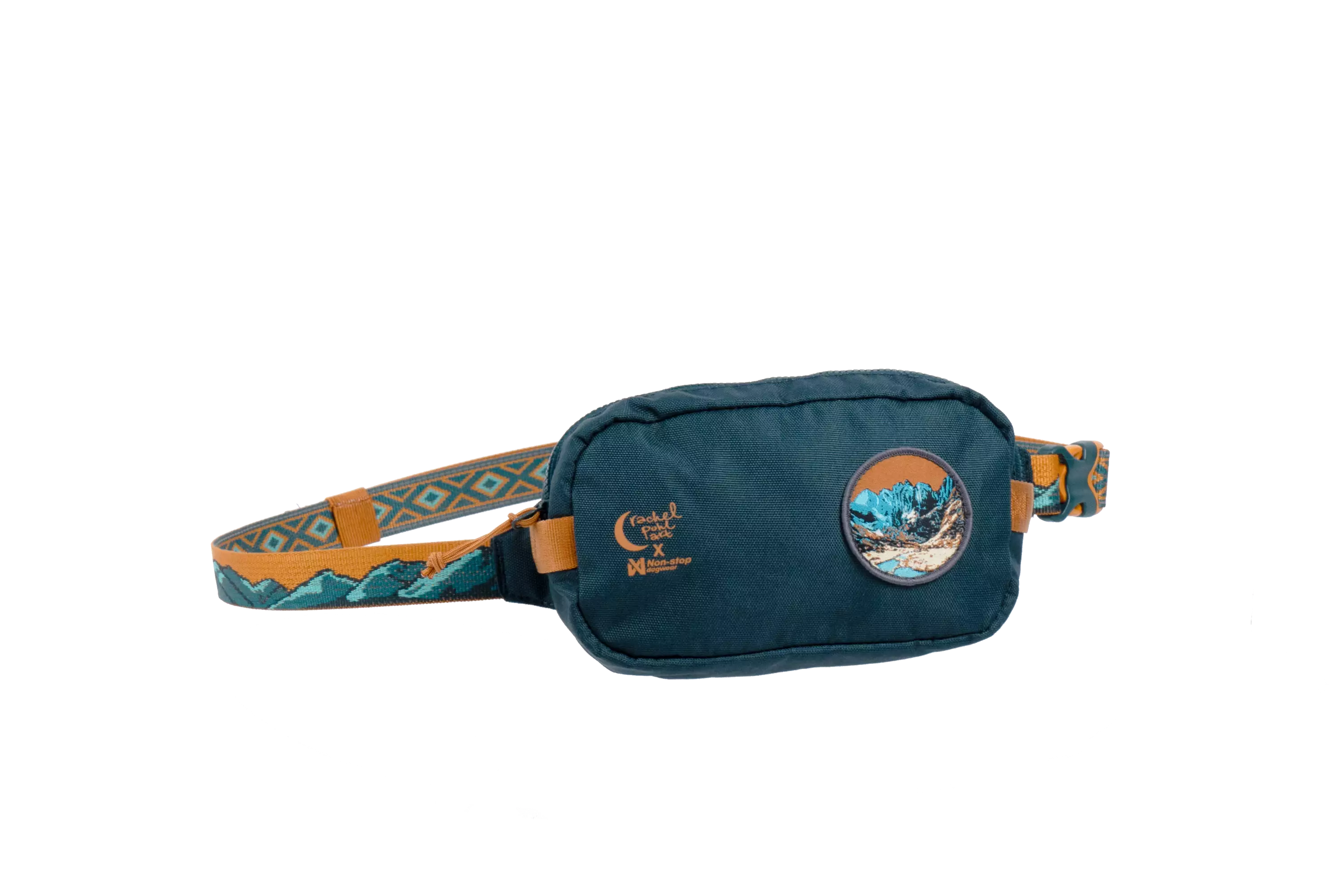 Koiranomistajille ja luonnonystäville suunniteltu vyölaukku, joka esittelee seikkailun henkeä Rachel Pohlin alkuperäisten akryylimaalausten kautta.