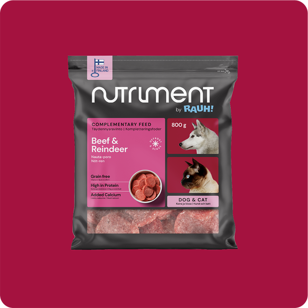 Täydennysravinto koiralle ja kissalle, medaljongit Nutriment by RAUH raakapakasteet on puhtaista raaka-aineista valmistettua raakaruokaa ilman säilöntäaineita. Nauta -poro medaljongit ovat koirien... Lue lisää