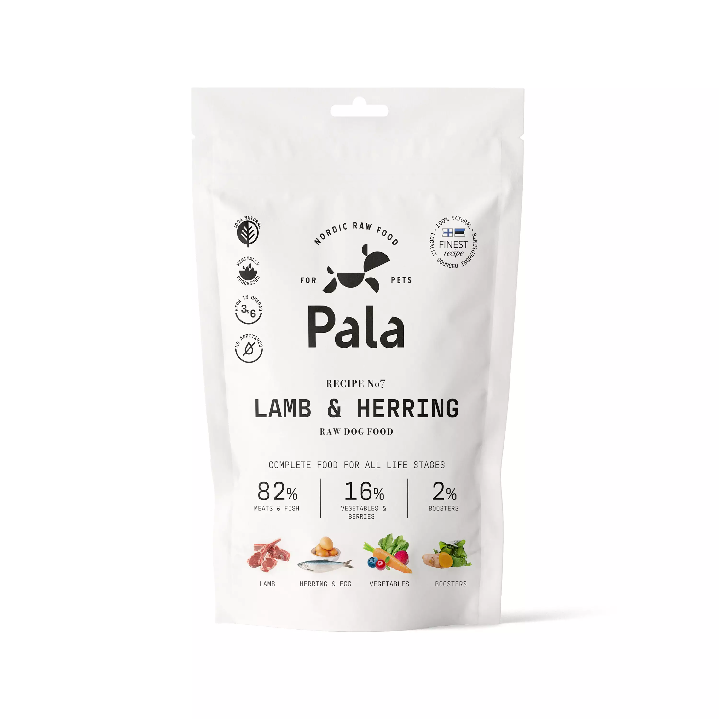 Sisältö: Lammas 41%, Atlantin silli 6%, kananmuna 6%, vihannekset 19%, luontaiset lisäaineet 3%