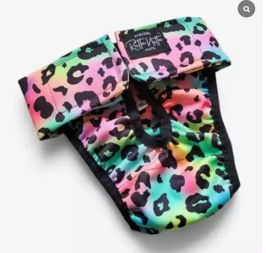 Pöksyissä on pehmeä ja joustava vyötärökaitale, jossa on portaattomasti säädettävä tarrakiinnitys, varmistaa täydellisen istuvuuden eri kokoisille koirille.