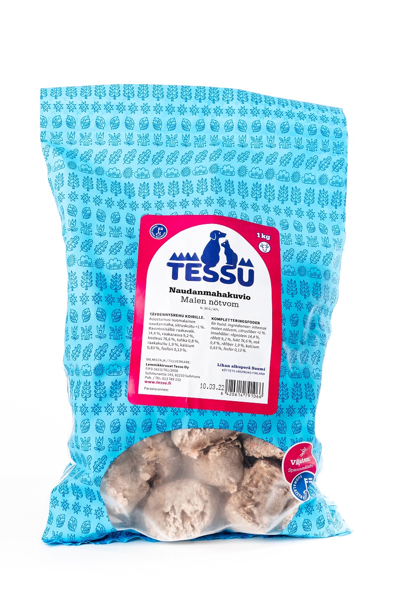 Herkullinen raakapakaste uudelleensuljettavassa pussissa – tätä koirasi itse valitsisi pakastehyllyllä nuuskutellessaan! Näppärän kokoinen kotimainen naudanmahakuvio (n. 30 g/ yksittäinen kuvio) on erittäin maistuva ja vatsaystävällinen raakaruoka, monen koiran suosikki. Ei kypsennettäväksi.
