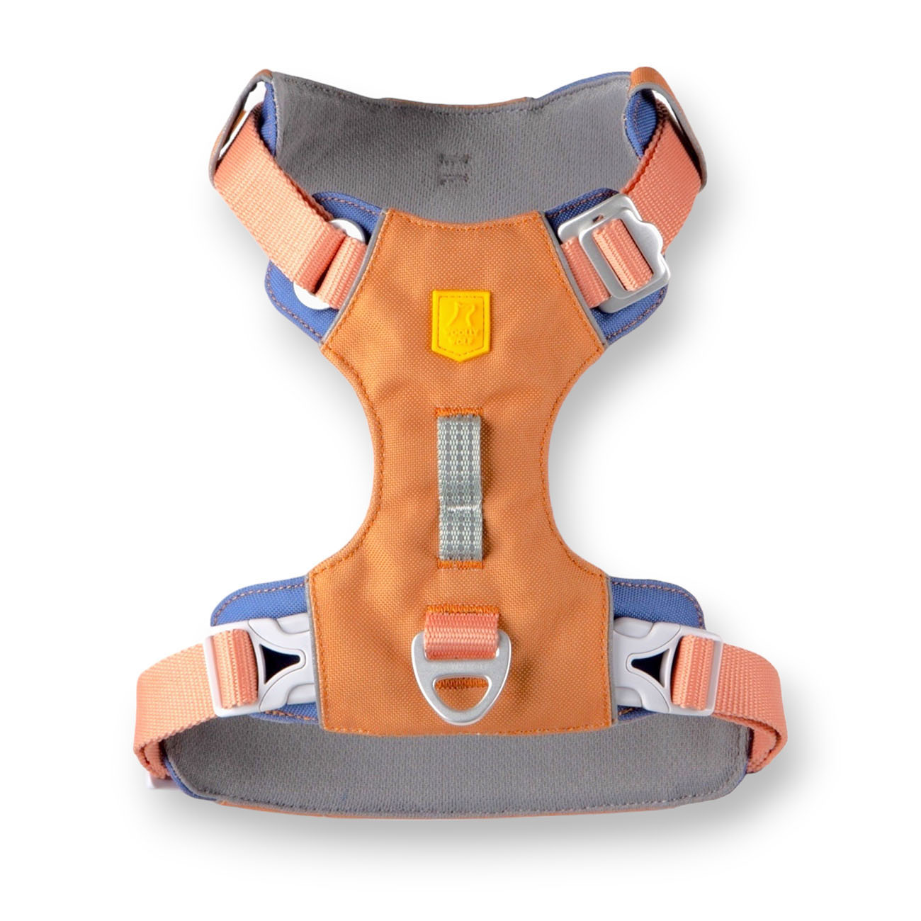 Näissä monipuolisissa valjaissa on kaksi hihnan kiinnitysvaihtoehtoa: alumiininen V-rengas, joka on keskitetty koiran selkään jokapäiväisiä kävelylenkkejä varten, ja erityisen vahva etupidike koiran rinnassa ohjaamaan hihnassa vetäviä koiria. (huom, etupidike ei ole metallia, vaan todella kestävää dyneema-punosta)