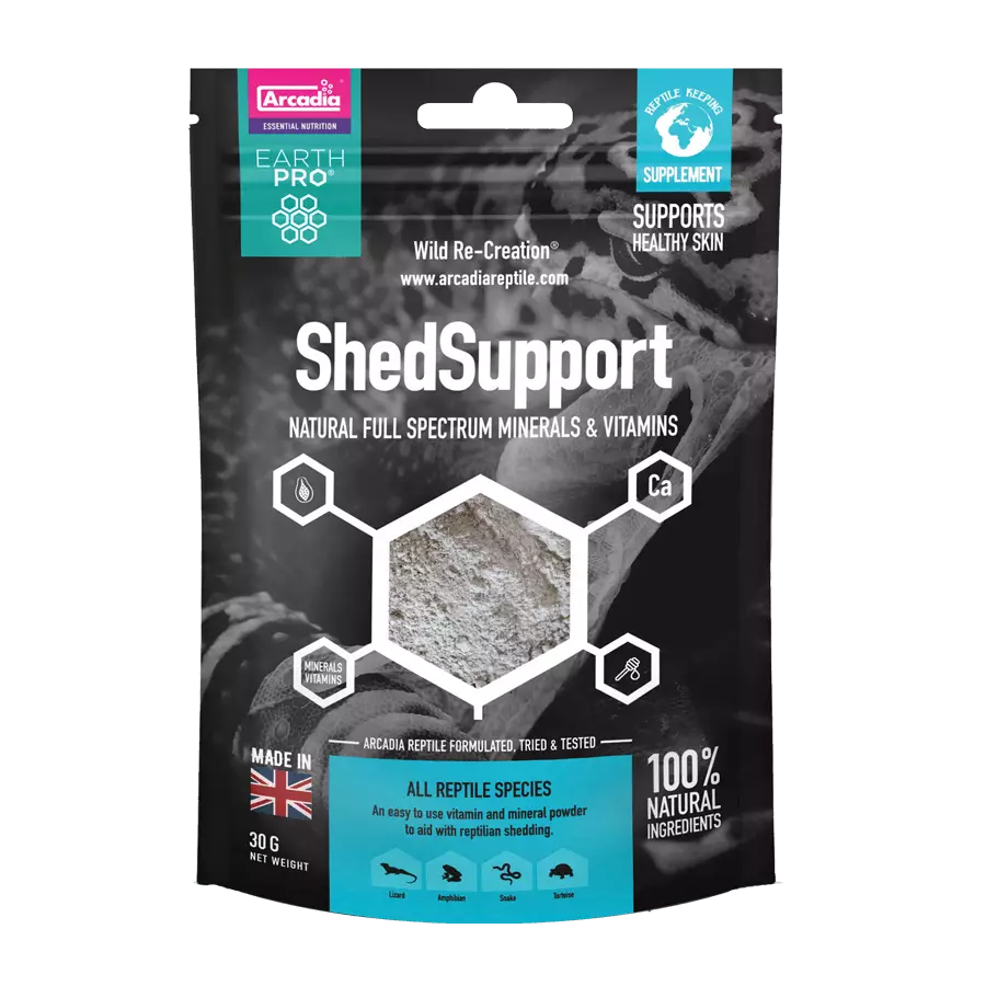 Arcadia Shedsupport 30g EarthPro-ShedSupport on annosteltu, kapseloitu mineraali- ja vitamiinijauhe, jota käytetään normaalin nahanluonnin aikana. Monet huonoon nahanluontiin liittyvistä... Lue lisää