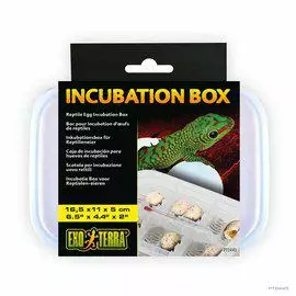 Exo Terra Inkubaatiolaatikko tekee matelijamunien inkuboinnista turvallisempaa, vähemmän monimutkaista ja parantaa kuoriutumisprosentteja. Exo Terra Inkubaatiolaatikko perustuu Suspended Incubation Method -menetelmään, mikä tarkoittaa, että munat ovat erityisesti suunnitellussa tarjottimessa "veden tai substraatin yläpuolella", eivätkä "kostean substraatin sisällä". Tämä menetelmä varmistaa maksimaalisen kaasunvaihdon läpäisevän munakalvon ja säiliön ympäröivän ilman välillä, ja se myös mahdollistaa munien riittävän kosteuden imeytymisen säiliön ympäröivästä kosteudesta. Lisääntynyt hapen imeytyminen parantaa kuoriutumisprosentteja ja vahvempia poikasia. Erityisesti suunniteltu munatarjotin pitää jopa 12 munaa, joiden enimmäiskoko on 380 mm x 180 mm (15" x 7"), ja se on suunniteltu estämään poikasia pääsemästä vesi- tai substraattiosioon. Tämä poistaa hukkumisriskin vesiosassa tai tukkeutumisen riskin, koska poikaset nielevät substraattihiukkasia syödessään ensimmäistä kuorintaansa. Perinteiset kostean substraatin inkubaatiomenetelmät vaativat monimutkaista ja jatkuvaa substraatin/kosteustasojen seurantaa, mutta Suspended Incubation Method on vaivaton. Inkubaatiolaatikko on valmistettu kestävästä, myrkyttömästä elintarvikelaatuisesta polypropeenista, ja se on helppo puhdistaa, desinfioida ja käyttää uudelleen useille munasarjoille. Substraattiton, hygieeninen inkubaatiomenetelmä pitää munat erillään ja auttaa estämään munien homehtumisen. Integroitu lämpömittari mahdollistaa todellisen lämpötilan tarkistamisen munien inkubaatiolaatikon sisällä sen sijaan, että luotettaisiin inkubaattorin yleiseen lämpötilamittaukseen.
