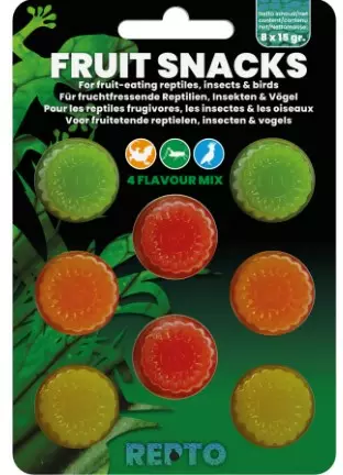 Käyttövalmis hyytelö annospakkuksissa kaikille hedelmiä syöville matelijoille, linnuille ja hyönteisille. Voidaan käyttää myös ruokittavien hyönteisten gutloadaamiseen ennen ruokintaa. Sisältää 4 eri makua: mansikka, mango, banaani ja hunaja. 8x15gl pakkaus.