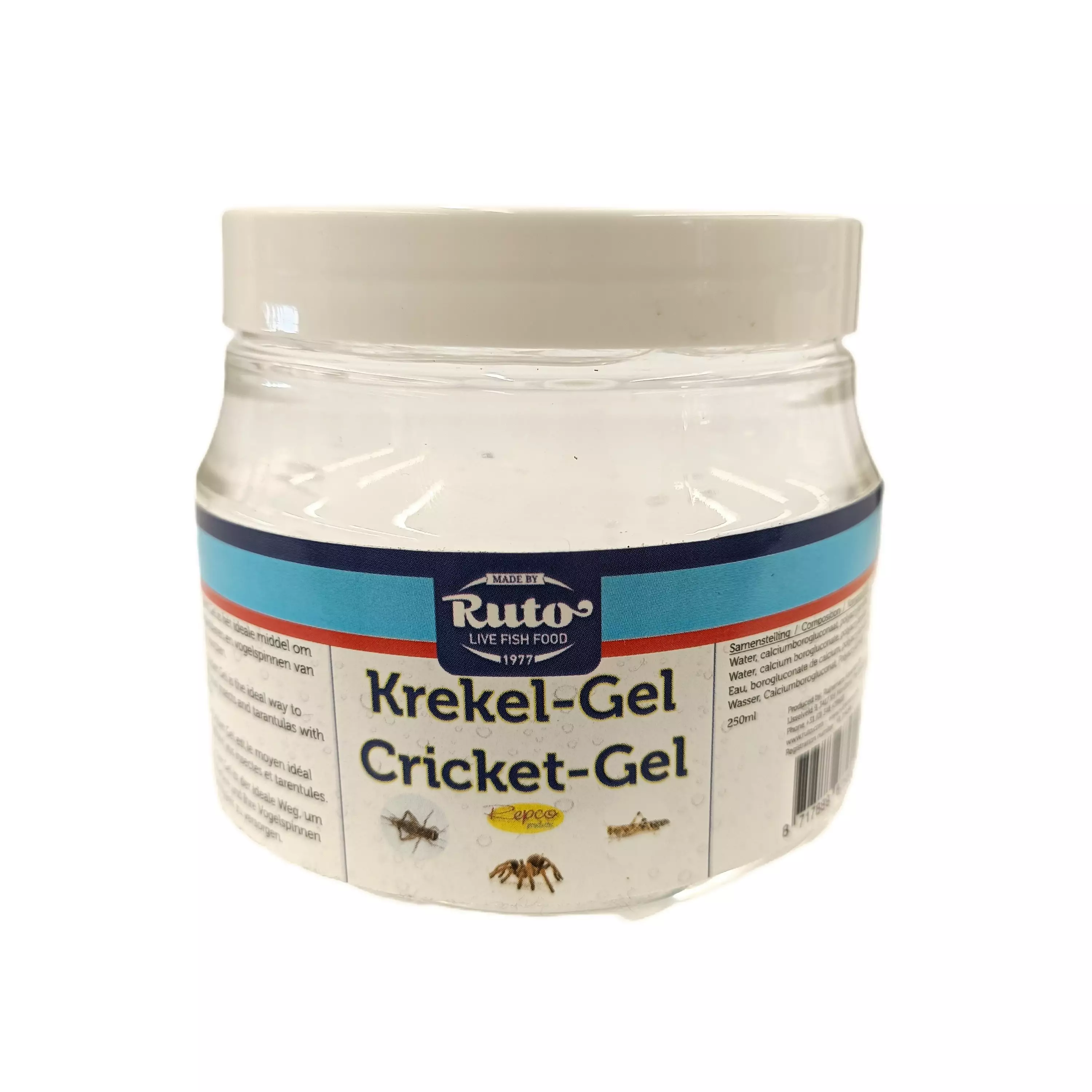 Cricket Gel on oivallinen tapa tarjota senkärangattomille tarvittavaa kosteutta geelin muodossa. Koostumus: vesi, kalsiumboroglukonaatti, polyakryyliamidi